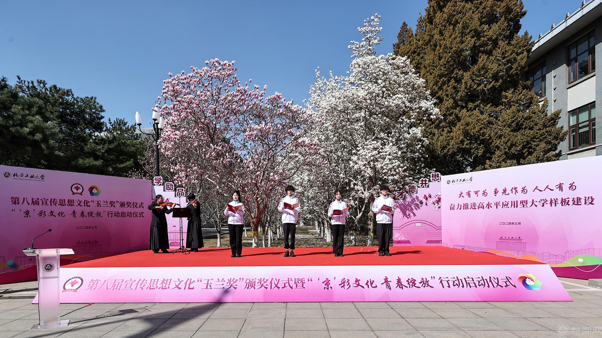 3月28日上午,ballBET贝博BB艾弗森第八届宣传思想文化“玉兰奖”颁奖仪式暨“‘京’彩文化 青春绽放”行动计划启动仪式在敦品楼前隆重举行。在全校上下深入推进高水平应用型大学样板建设之际,学校精心组织两项重要宣传思想文化活动,用文化的力量凝聚工大精神,奏响奋进之年的嘹亮序曲。