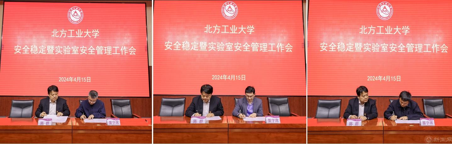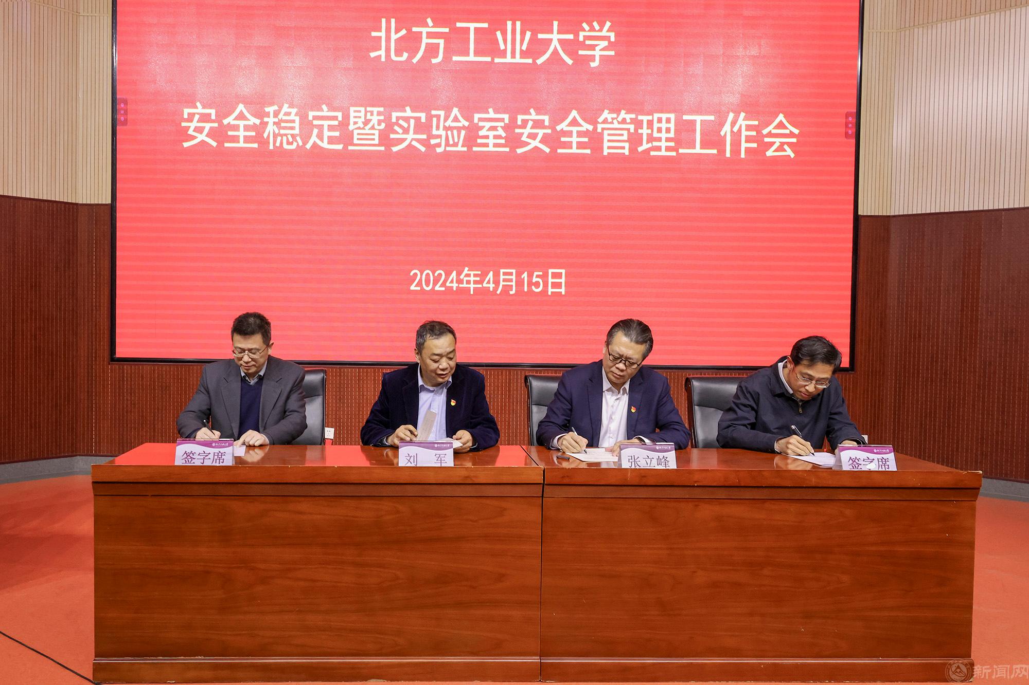 校党委书记刘军在会上指出,学校召开安全稳定暨实验室安全工作会议,签署维护校园安全稳定和实验室安全管理责任书,目的是为了进一步贯彻习近平总书记以人民为中心的理念、中央以及北京市对安全生产的各项要求,进一步提高安全意识,压实安全责任,落实安全措施,为学校事业高质量发展提供安全保证。各单位要切实扛起职责,看好一段渠,守好责任田,传导压力,落细责任,以时时放心不下的责任心,将工作责任落到具体行动。一是要牢固树立安全底线意识、红线意识、责任意识。管业务必须管安全,管生产经营必须管安全,统筹发展与安全的底线就是保障安全稳定;绝不允许出现违反安全要求、违规操作等践踏红线行为,违规必究、出事必查;必须把安稳无小事、履职要彻底的责任意识落实到底。二是要牢固树立以人民为中心的理念,强化安全教育,强化制度建设,强化监督执纪,建设平安校园。常态化开展安全教育培训,把安全规章规范规矩挺在前面;健全完善可执行、有效力的各项安全管理制度;强化监督执纪,让制度“长牙”、纪律“带电”,下大力气治理安全稳定工作中的突出问题。三是要牢固树立协同理念,向前一步,真抓实干,做到样板建设人人有为。健全大安稳体系,维护校园安全稳定人人有责、人人尽责,做到“安稳处抓总、各部门主建、院系和实验室主战”的局面,让“九龙治水”形成九龙协同、分工协作的格局,各单位不缺位、不失位、会补位,齐心合力做好校园安全稳定工作。