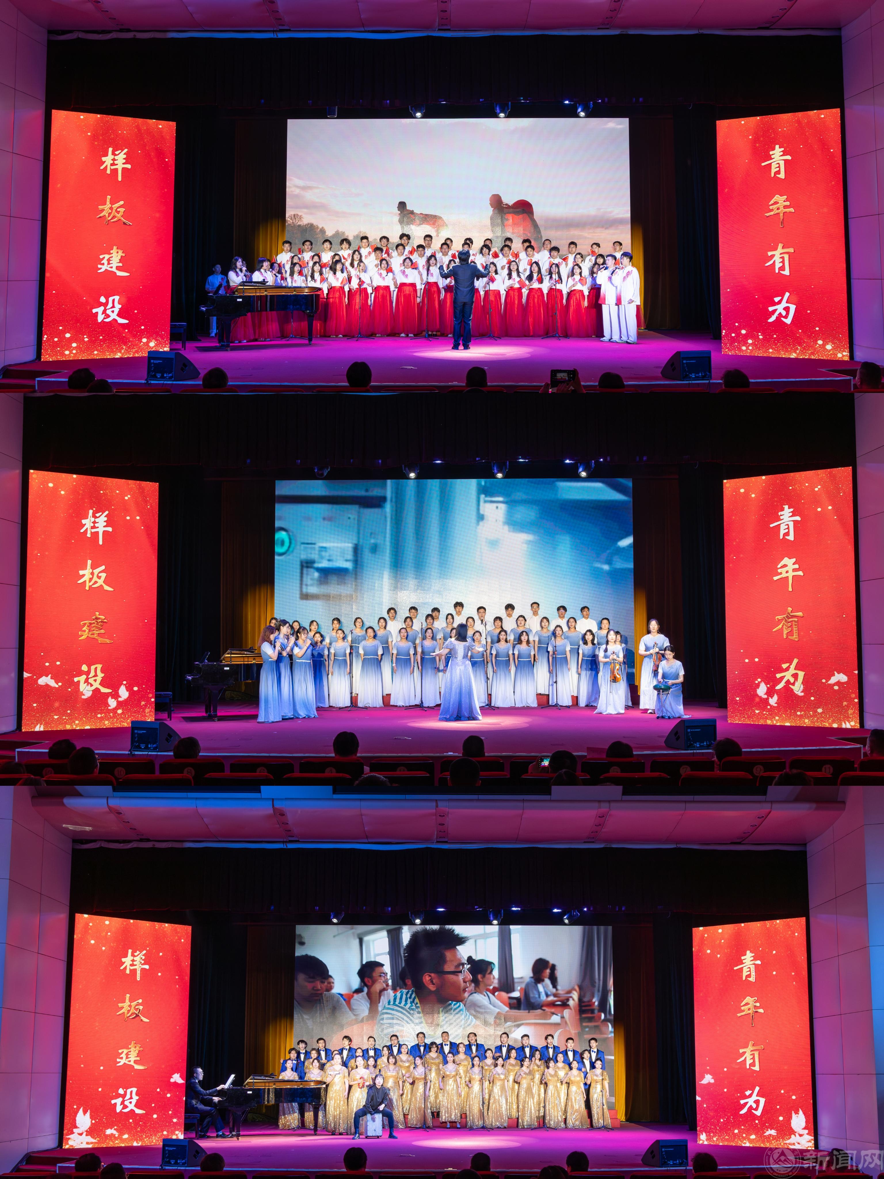 文法学院师生以一首柔美而深沉的赞歌《绒花》拉开了青春歌会的序幕,各学院师生依次登台分别唱响了“青年与责任担当”“青年与强国建设”“青年与民族复兴”的青春乐章。信息学院师生以一首旋律悠扬的《追寻》抒发对伟大祖国和中国共产党的热爱,表达对理想信念的坚定守护。机械与材料工程学院师生以一首饱含深情的《在灿烂的阳光下》娓娓诉说着长辈给予年轻人思想上的启迪。土木工程学院师生以一曲慷慨激昂的《保卫黄河》唱出了黄河波涛滚滚、势不可挡的气势和必胜的乐观主义情怀。伦敦布鲁内尔学院师生用中英文演唱响遍神州的金曲《歌唱祖国》,唱响了激情澎湃的爱国之声。经济管理学院师生以一首旋律优美动人、歌词朴实真挚的《我和我的祖国》诠释了个人与祖国之间血肉相连的情感。建筑与艺术学院师生唱响爱国叙事歌曲《我爱你,中国》,传递着希望的力量和永不言弃的信念、表达了游子对祖国的拳拳之心和深深眷恋。马克思主义学院师生高唱《没有共产党就没有新中国》,表达了对中国共产党的衷心拥护和永远跟党走的坚定信念。理学院师生带来的《唱支山歌给党听》,表达了人民群众对党的深厚感情。电气与控制工程学院合唱团以一首深情大气、通俗易懂的《不忘初心》带领全场观众重温了红军战士用生命和热血铸就的雄壮历史、革命先辈用理想和信念丈量的伟大远征。