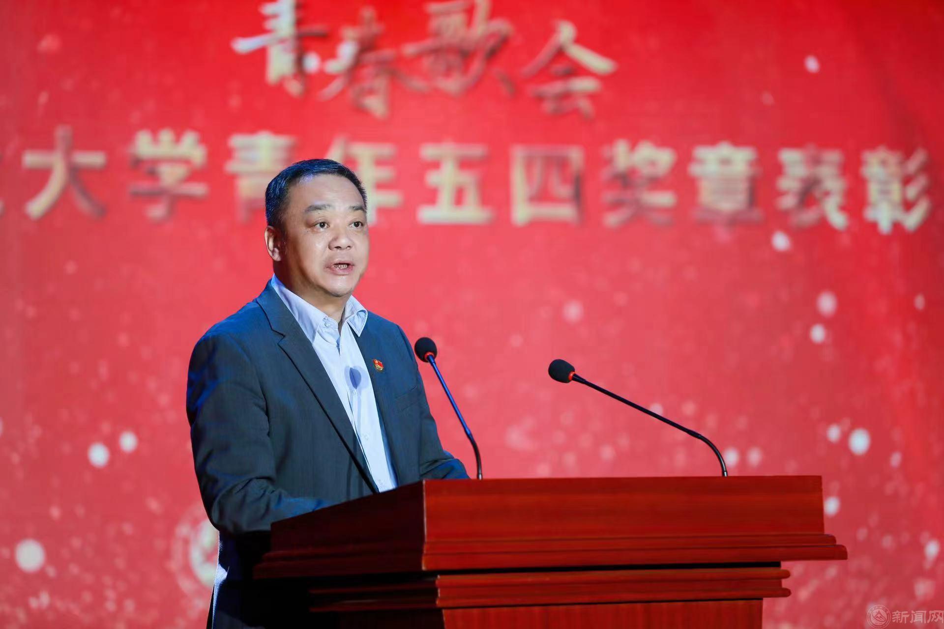 党委书记刘军致辞,向全校共青团员和青年师生致以亲切的问候,向受到表彰的集体和个人表示热烈的祝贺,并对广大青年师生提出了殷切的希望。他指出,今年是新中国成立75周年,当前和今后一个时期是以中国式现代化全面推进强国建设、民族复兴伟业的关键时期,希望全校青年勇担强国使命、争做复兴栋梁,努力回答好“强国建设、工大何为、青年何为”的时代命题。一是要继承和发扬五四精神,勇担时代使命。新时代中国青年运动的方向和使命就是坚持党的领导,同人民一道,为实现“两个一百年”奋斗目标、实现中华民族伟大复兴的中国梦而奋斗。二是要知行合一、锻炼自己,切实当好党的助手和后备军。要牢记习近平总书记对新时代中国青年的殷殷嘱托,树立远大理想、热爱伟大祖国、担负时代责任、勇于砥砺奋斗、练就过硬本领、锤炼品德修为,全校青年师生要练就真本领、不断锤炼品行,努力做到敦品励学、才德并懋,为奉献国家和社会做好准备。三是要助力样板建设,在实干笃行中绽放青春光彩。全校广大青年要立足本职、立足岗位、面向未来,为学校高水平应用型大学样板建设献策献力。青年干部要对标“争先作为”的目标要求,勇做样板建设的“先锋队”;青年教师要永葆“大有可为”的奋进姿态,敢做样板建设的“主力军”;青年学生要强化“人人有为”的使命担当,争做样板建设的“弄潮儿”。