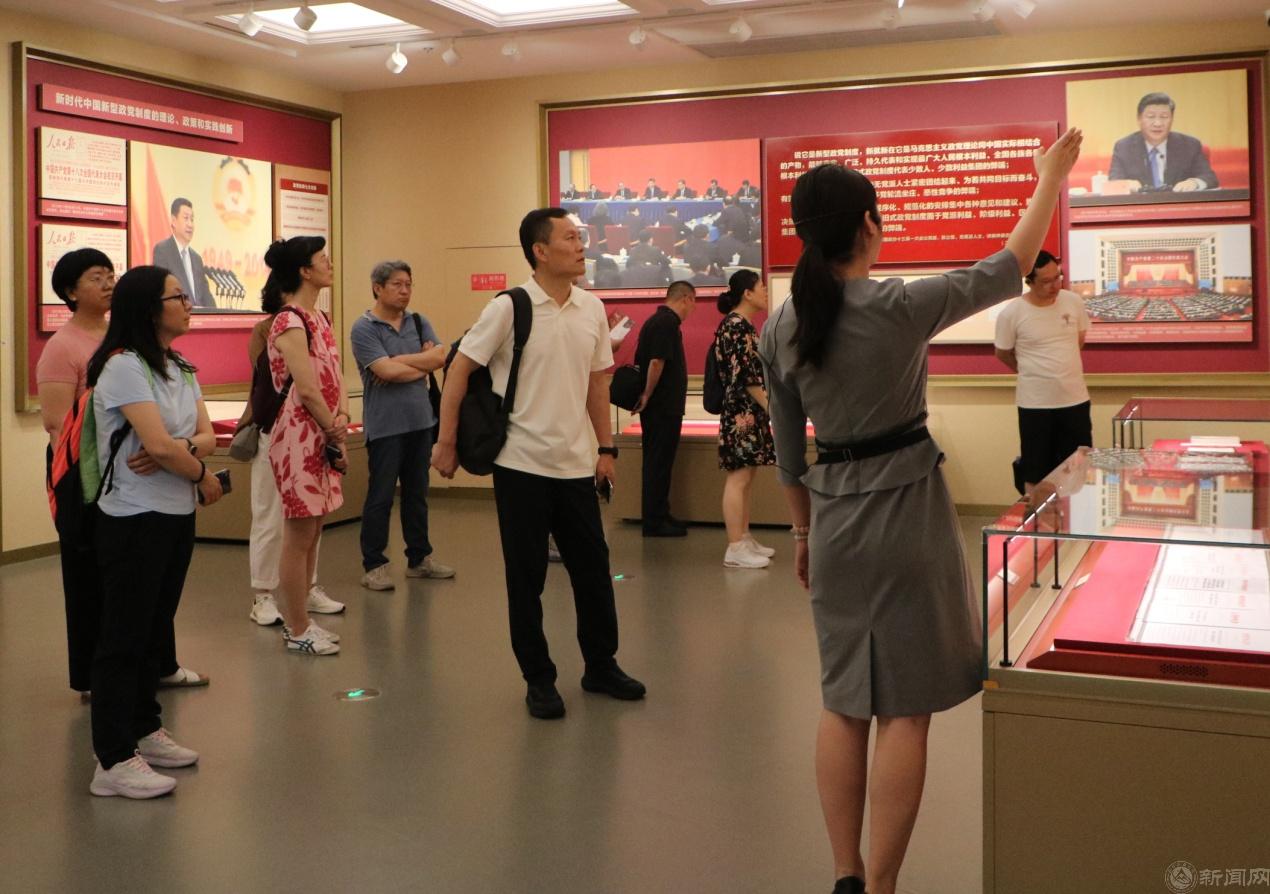 在中国民主党派历史陈列馆,学员们参观主题为“共画同心圆共圆中国梦”的中国民主党派历史展览。在中国新型政党制度和民革、民盟、民建、民进、农工党、致公党、九三学社、台盟、无党派人士等展区,和“民主之家”特园历史故事场景陈列中,领略了中国共产党团结带领各民主党派、无党派人士及统一战线广大成员携手奋进、共谋复兴的壮美画卷。