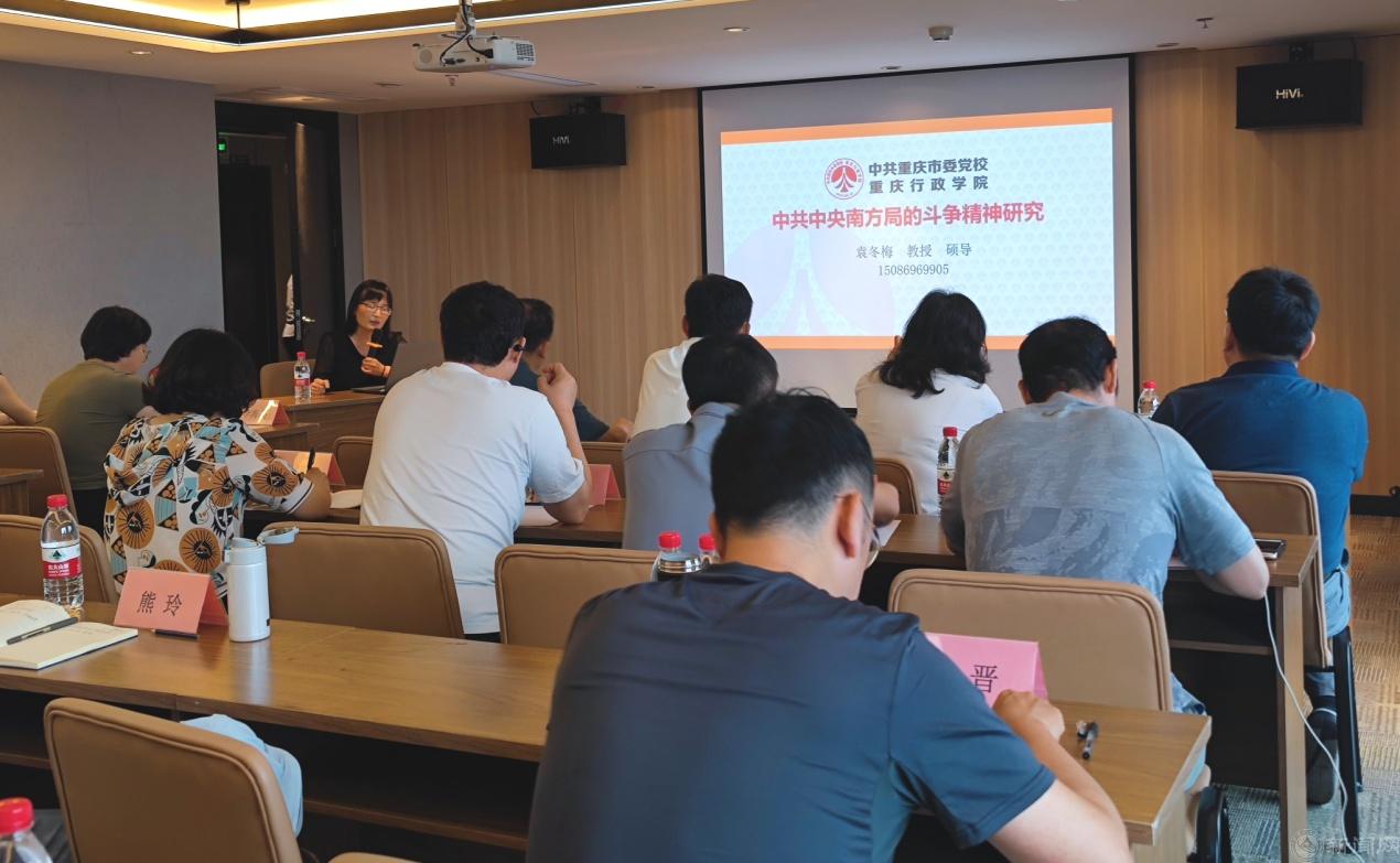 在专题学习研讨环节,中共重庆市委党校、重庆行政学院袁冬梅教授作《中共中央南方局的斗争精神研究》专题报告。学员们深入学习各民主党派与中国共产党风雨同舟的光辉历史,深切感悟艰苦革命斗争中铸就的伟大红岩精神,深入交流学习体会。