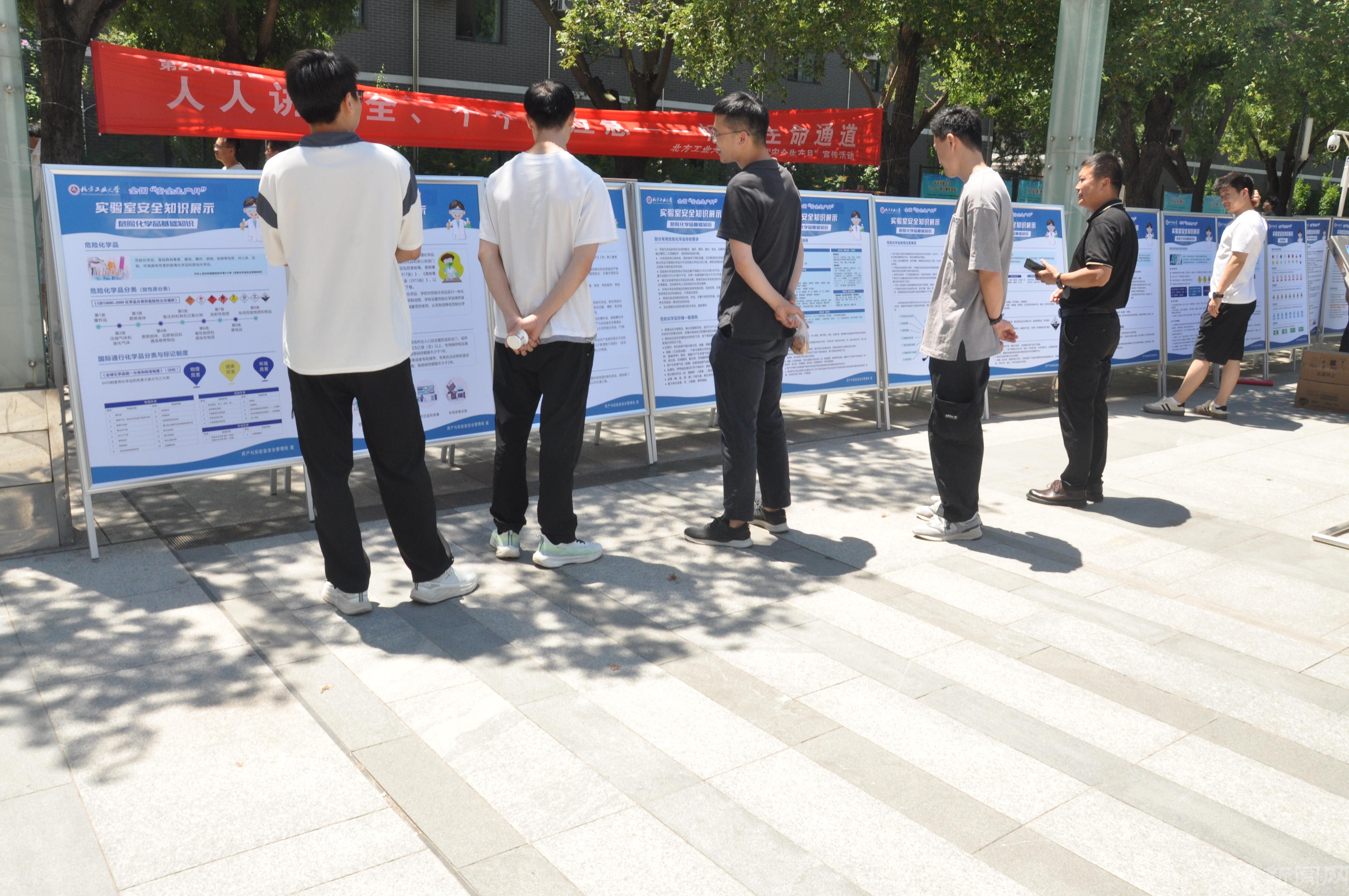 在活动现场,各部门设立了安全生产展板,就消防安全、实验室安全、饮食安全等内容进行宣传。同时围绕贝博官网已完成的“打通生命通道、拆窗破网行动”等重点工作进行了介绍。师生、员工认真观看展板内容,了解畅通生命通道的重要性及应急逃生的要点。