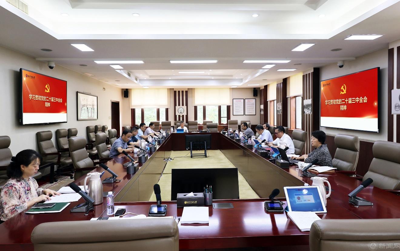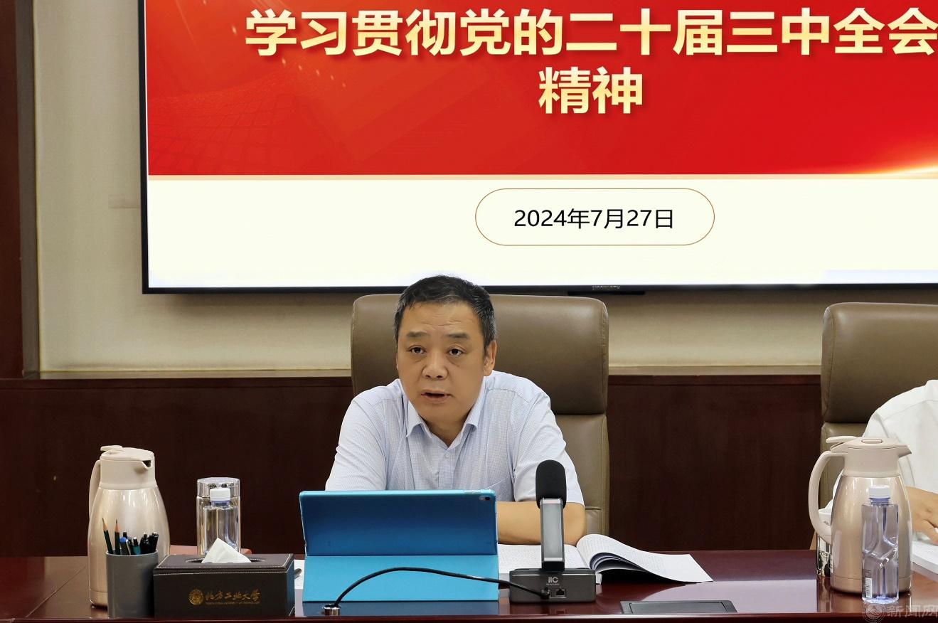 刘军在会上表示,党的二十届三中全会是在以中国式现代化全面推进强国建设、民族复兴伟业的关键时期召开的一次十分重要的会议。全会审议通过的《决定》,充分肯定了改革开放以来特别是新时代取得的伟大成就,科学谋划了围绕中国式现代化进一步全面深化改革的总体部署,具有重要的指导意义。刘军强调,学习宣传贯彻党的二十届三中全会精神是当前和今后一个时期学校重要的政治任务,要着力增强学习宣传贯彻的政治自觉、思想自觉和行动自觉,重点围绕习近平总书记在全会上的重要讲话精神和全会《决定》,原原本本学、全面系统学、深入思考学、联系实际学,努力掌握全会精神的丰富内涵和核心要义。刘军要求,要立足高水平应用型大学发展定位,聚焦服务国家战略和首都需求,结合“上水平,拓条件,调结构,强内涵,增动力”的主要任务,深度思考学校发展瓶颈和突破路径,要将全会精神落实到暑期战略研讨会上,结合学校实际深远谋划,以改革之力推动学校高质量发展,以改革之笔书写学校奋进华章。