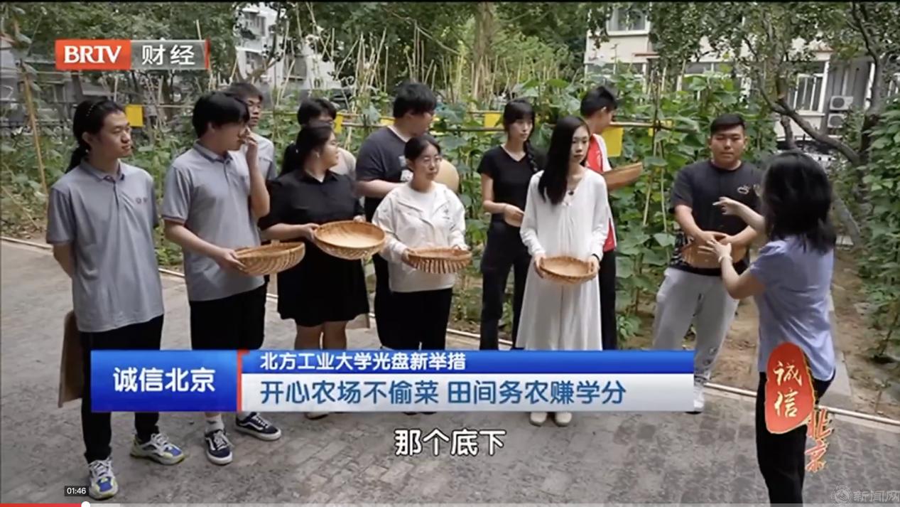 7月22日,北京卫视财经频道《诚信北京》栏目播出《“开心农场”不偷菜 脚底板走出来的“光盘”》节目,学校党委常委、副校长王力,相关部门负责人及部分学院学生等7人在节目中介绍了贝博官网节约粮食工作的特色和亮点。