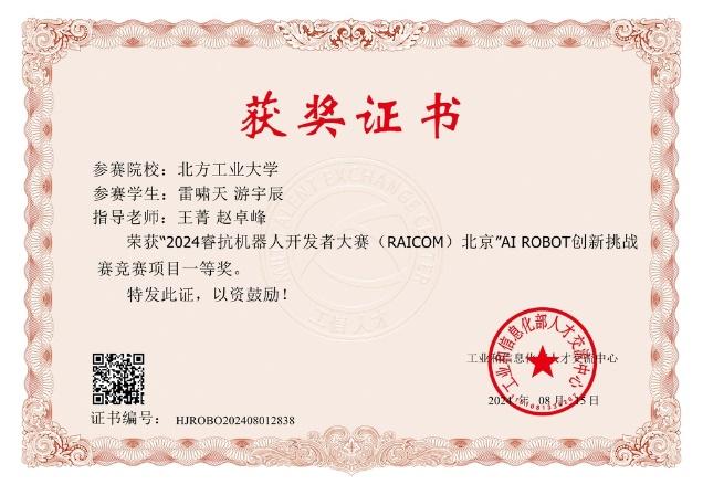 为加强以“竞赛+创新产品”为抓手的人工智能专业第二课堂建设和学生实践能力培养,围绕“具身智能机器人”这一研究和产业热点方向,在2024年暑假期间,贝博官网信息学院人工智能专业组织学生参加了中国机器人及人工智能大赛、睿抗机器人开发者大赛等多项教育部榜单竞赛,并取得国家级一等奖1项,二等奖2项,三等奖1项,“挑战杯”北京市银奖、“互联网+”北京市三等奖等佳绩。