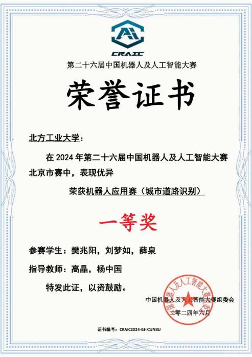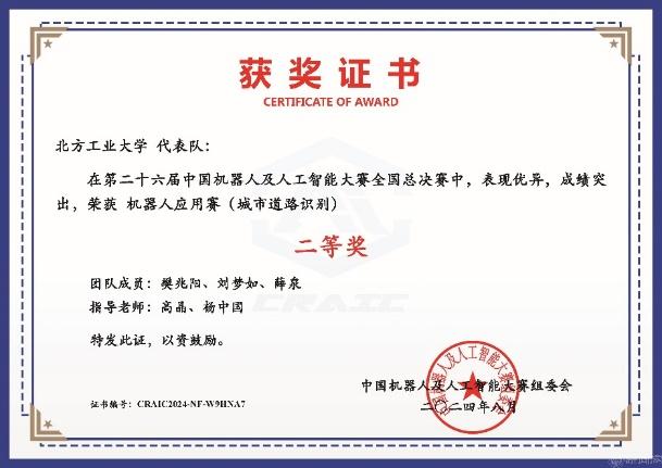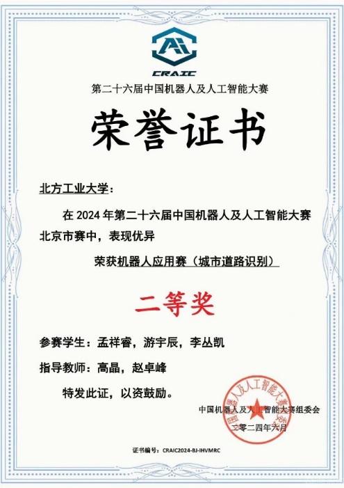 中国机器人及人工智能大赛的“城市道路识别”赛项总决赛为线上举办,贝博官网信息学院人工智能专业学生在此赛项中获国家级二等奖1项,北京市一等奖1项,二等奖1项。
