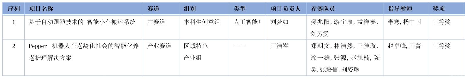 近日,中国国际大学生创新大赛(2024)北京赛区复赛圆满落下帷幕,贝博官网信息学院人工智能专业学生在比赛中荣获两项三等奖,分别为“基于自动跟随技术的智能小车搬运系统”及“Pepper机器人在老龄化社会的智能化养老护理解决方案”。