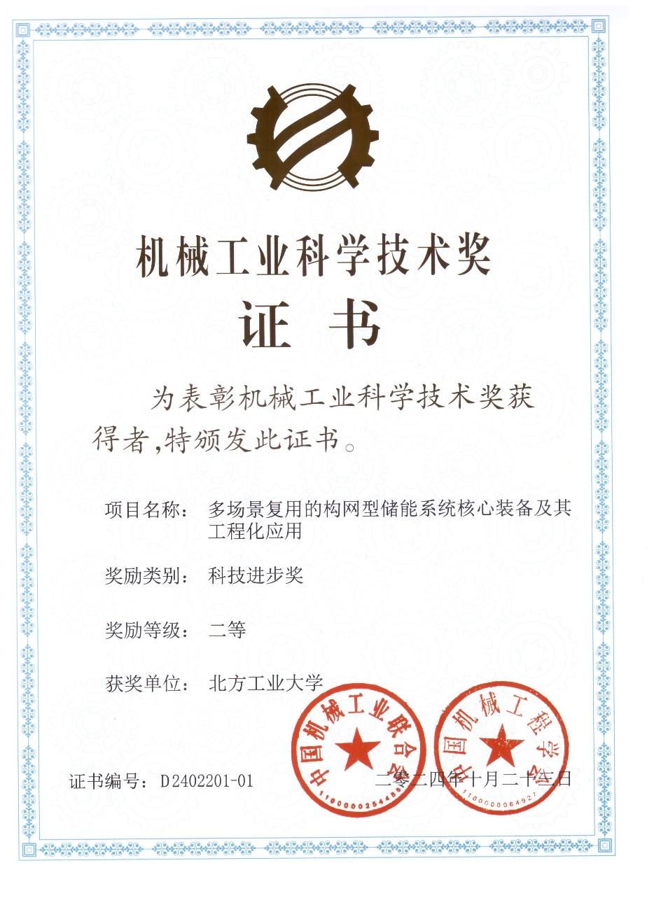 近日,中国机械工业联合会发布了《关于表彰2024年度“机械工业科学技术奖”奖励项目的通报》。贝博官网作为第一完成单位,电气与控制工程学院李建林教授、刘硕高级实验师等人作为核心成员申报的“多场景复用的构网型储能系统核心装备及其工程化应用”获评科技进步奖二等奖。