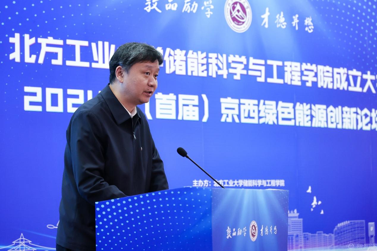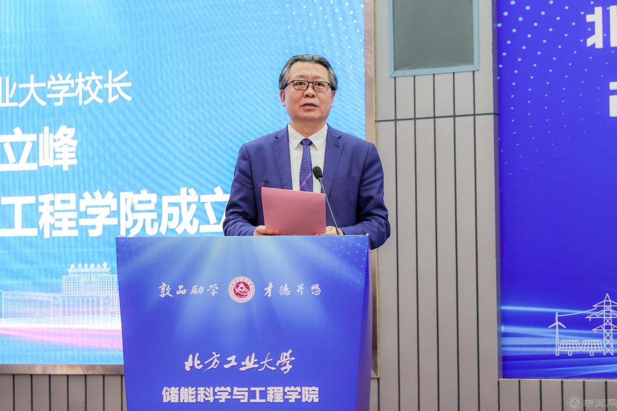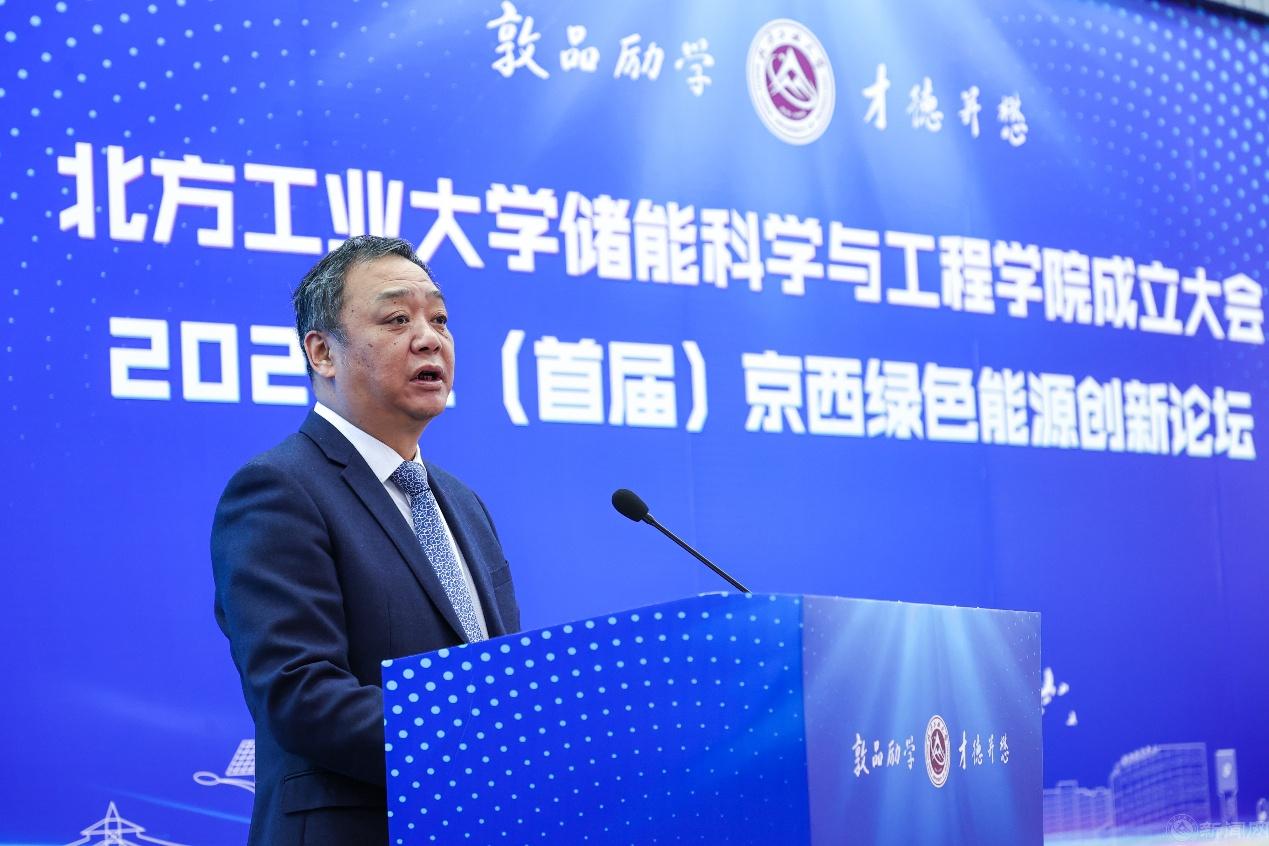 张立峰在成立大会上致辞。他回顾了学校的发展历史,指出自1978年兴办本科以来,学校师生不断适应国家和北京市发展需要,推动学科转型升级,使“老工科”赋予了“新内涵”,开出了“新花朵”。特别是近三年来,学校步入发展 “快车道”,实现了“新人才”“新学科”“新博士点”“新校区”的“四新”发展,师生对学校未来发展充满信心。张立峰强调,成立储能科学与工程学院是学校顺应时代发展潮流,响应国家战略需求,培养高素质储能科学与工程人才,推动储能技术进步和产业发展的重大举措。学校将以储能科学与工程学院为抓手,整合校内外优质资源,打造一流的储能交叉学科研究平台,推动储能科学与工程领域的学术交流和技术创新,为我国储能产业的发展贡献智慧和力量,为服务首都高质量发展、推动我国能源革命和可持续发展做出应有的贡献。