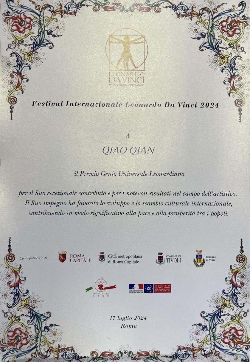 近日,2024达·芬奇艺术奖颁奖典礼在罗马市政厅揭幕。本次颁奖典礼由意大利国会参议院议员Alessandro Battilocchio 先生、罗马市文化旅游和时尚设计委员会主席Mariano Angelucci先生、意大利达·芬奇国际文化艺术交流协会会长Wang tianqi先生、副会长Alessandro Petrini 先生主持并颁奖。贝博官网乔迁老师获评杰出艺术家奖,这一殊荣旨在表彰在艺术领域具有杰出成就的艺术家与研究者。