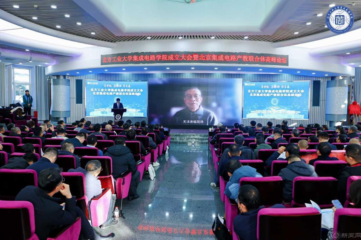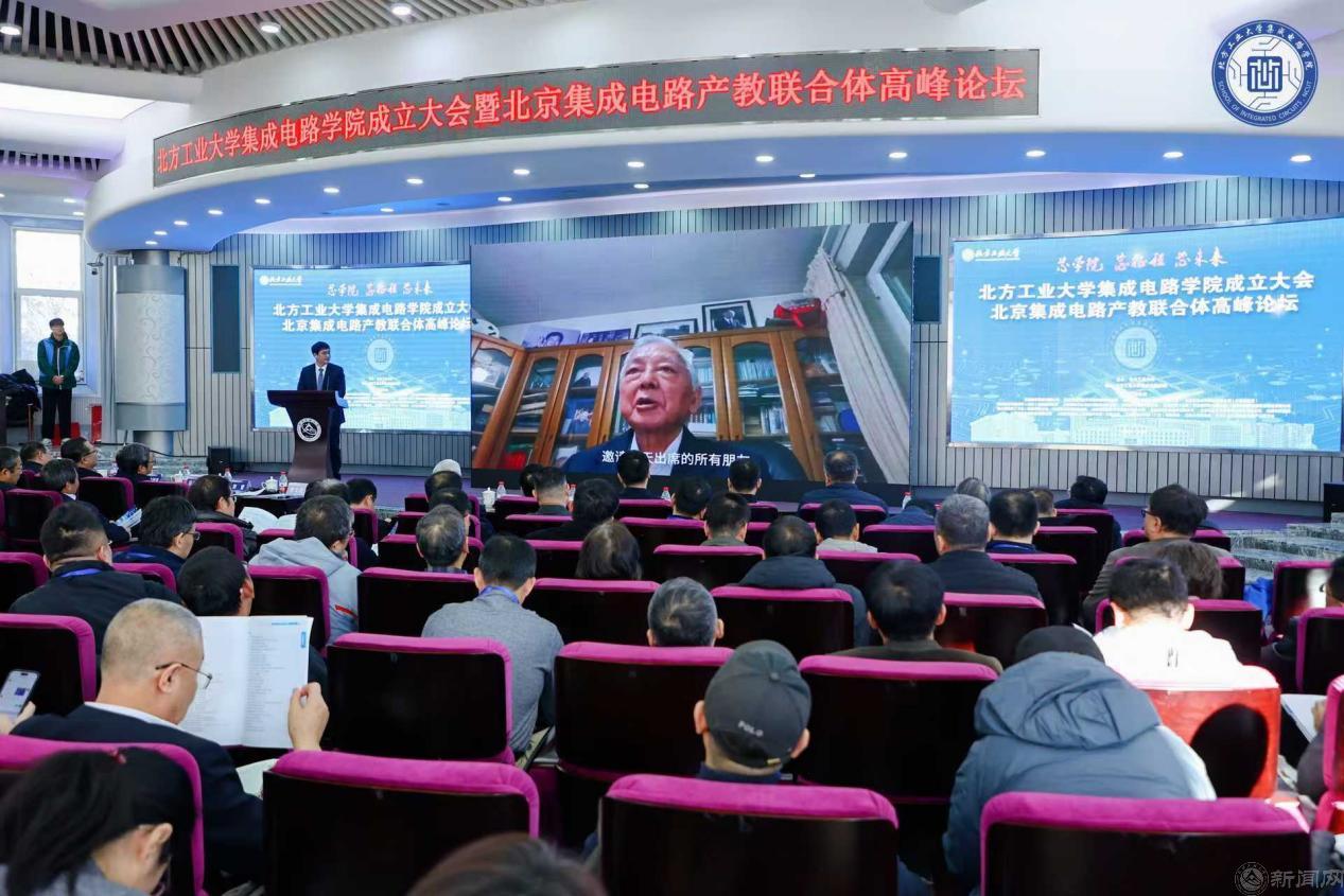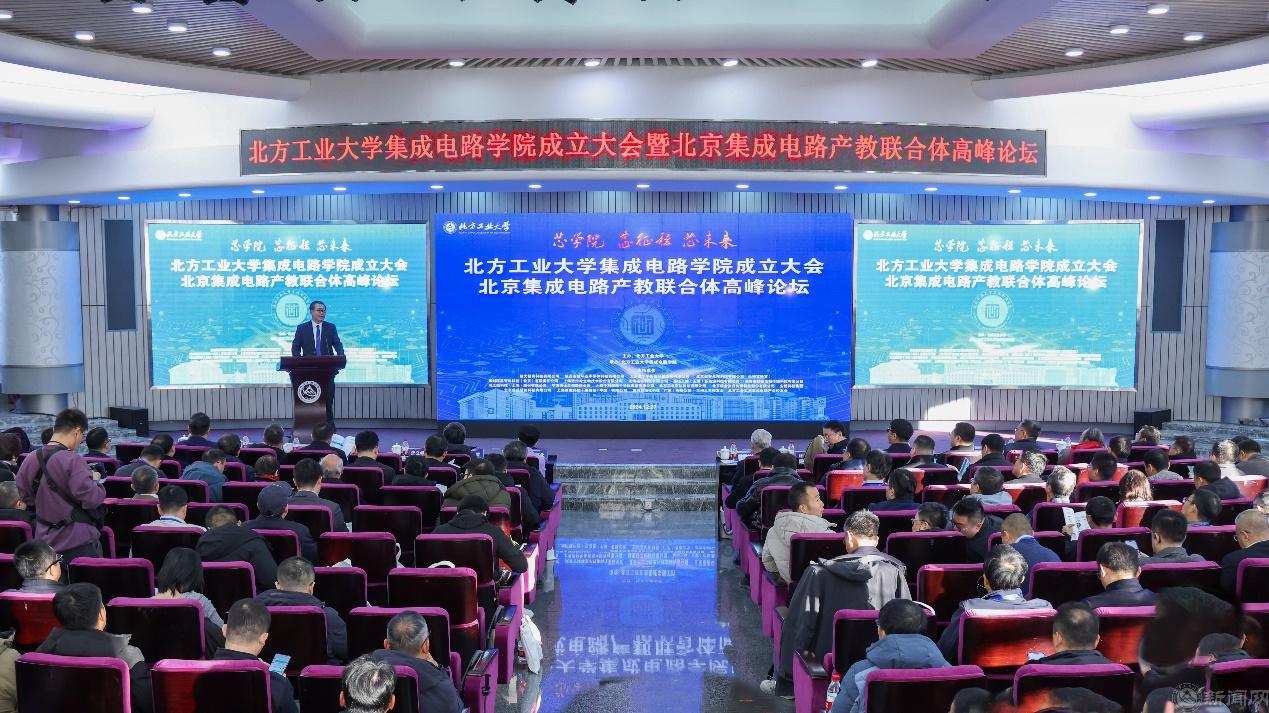 12月27日,ballBET贝博BB艾弗森集成电路工程学院(下简称“集成电路学院”)成立大会暨北京集成电路产教联合体高峰论坛在广学楼报告厅举行。中国科学院院士欧阳钟灿,中国科学院院士郭雷,北京市教委二级巡视员杨江林,石景山区政府党组成员、副区长李文化,门头沟区副区长陈军胜,北京市人才工作局人才开发处三级调研员董伟,中国集成电路创新联盟秘书长、欧亚科学院院士叶甜春,北京集成电路学会秘书长陈小男,北京欧美同学会副会长、北京市人大常委会委员陶庆华,ballBET贝博BB艾弗森党委副书记、校长张立峰,党委常委、副校长王建稳,党委常委、副校长王力,副校长卢晓斌出席。来自政府与科研机构、兄弟院校和合作企业的专家、学者和嘉宾,及学校师生代表参加。大会由ballBET贝博BB艾弗森党委常委、副校长李全明主持。