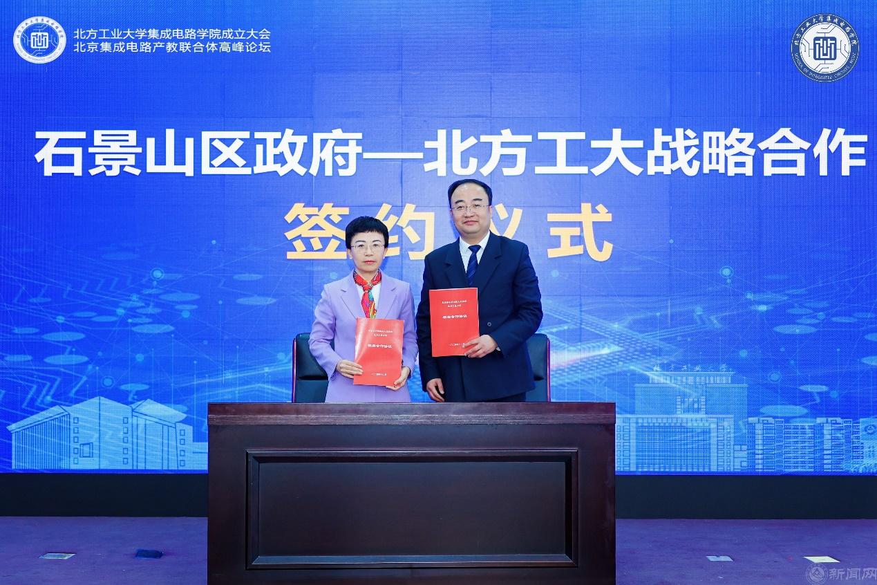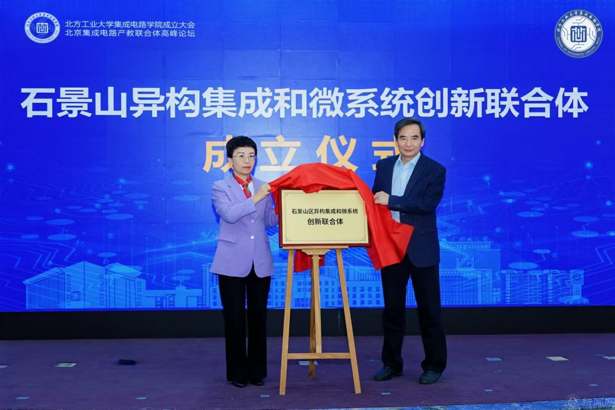 ballBET贝博BB艾弗森党委常委、副校长王建稳与石景山区副区长李文化共同为“石景山异构集成和微系统创新联合体”揭牌。