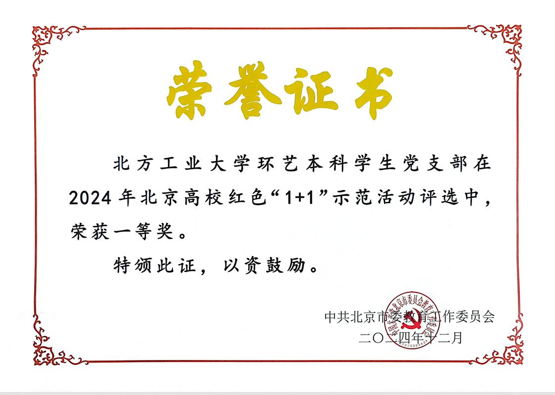 近日,2024年北京高校红色“1+1”示范活动展示交流评选结果揭晓。经学校推荐、专家初评、现场展示等环节,贝博官网环艺本科学生党支部从北京地区53所高校推荐的105个学生党支部中脱颖而出,荣获北京高校红色“1+1”示范活动一等奖。