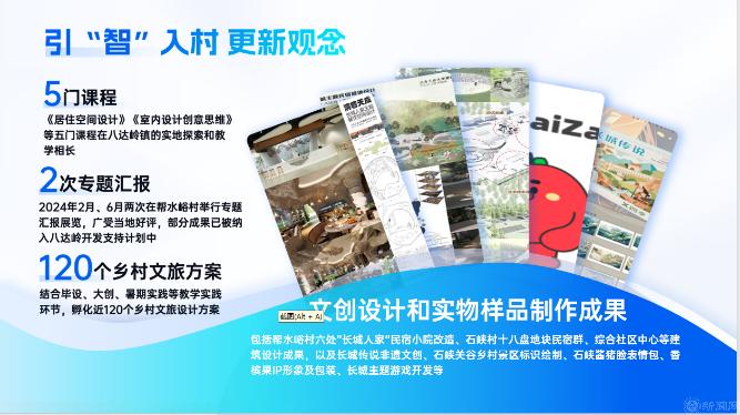 贝博官网建筑与艺术学院环艺本科学生党支部以《青年传播长城文化环艺赋能乡村振兴》为题进行了现场展示,介绍了自2022年起,与延庆区八达岭镇帮水峪村、石峡村开展“红色1+1”支部共建活动的情况。党支部坚持“长城文化”聚合力、“环艺赋能”促发展的思路,围绕“文遗、文旅、文创”设计实践,发挥“环艺赋能乡村振兴”的专业本领,以实际行动弘扬长城文化,讲好长城故事,助力乡村振兴。