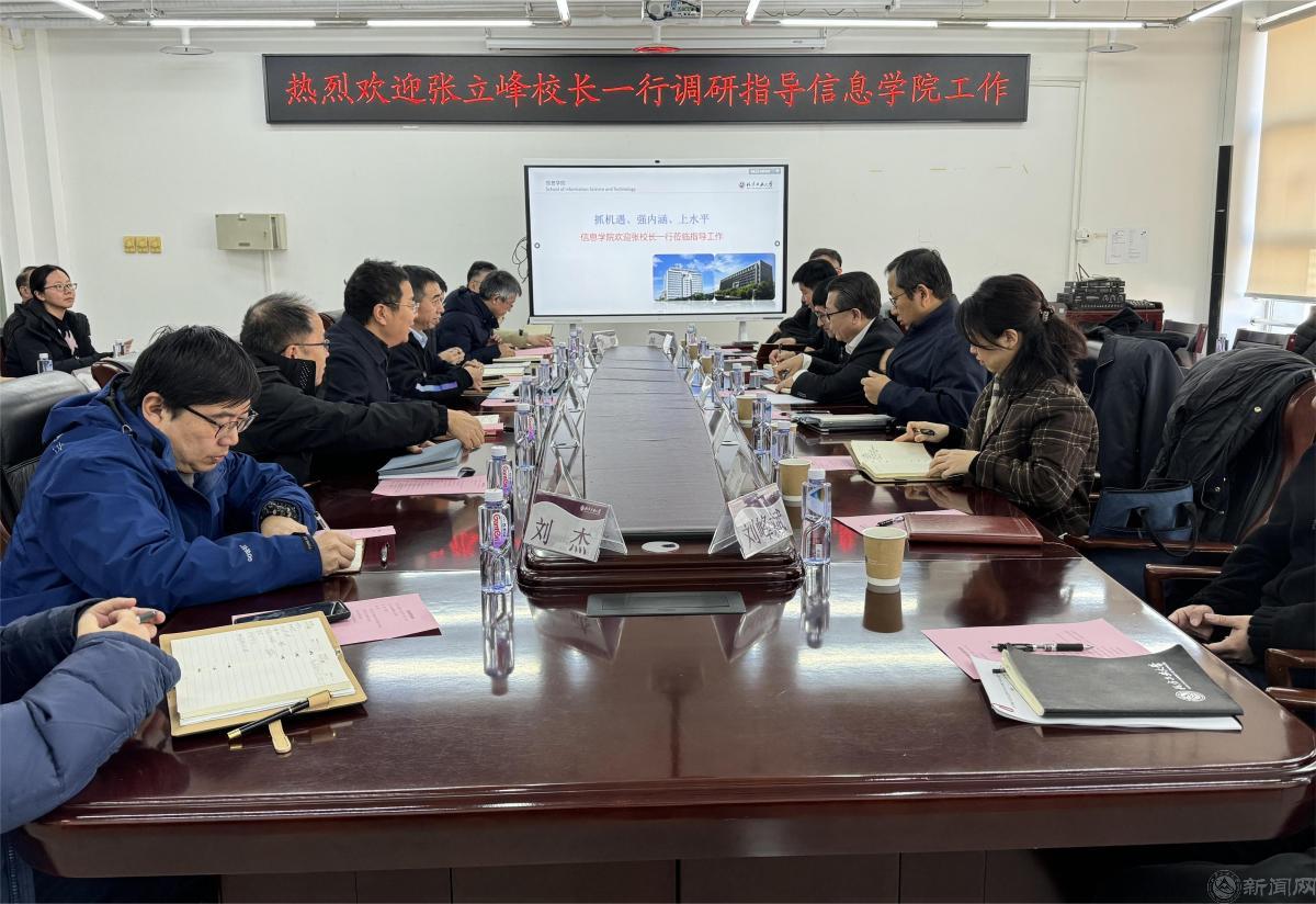 1月13日上午,党委副书记、校长张立峰,党委副书记史贞军,党委常委、副校长李全明到信息学院开展专题调研。