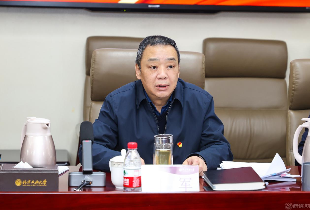 刘军代表学校领导班子表态发言。学校党委将不折不扣落实中央、市委各项决策部署和工作要求,结合市委第六督导组第三小组提出的意见建议,抓好整改落实。一是深入学习贯彻习近平新时代中国特色社会主义思想、党的二十届三中全会精神、全国教育大会和北京市教育大会精神,突出政治引领,强化理论武装,提高党建引领能力,落实好学校第九次党代会提出的行动纲领,提前谋划好“十五五”规划。二是把握好“强基固本、提质扩容”的工作基调,落实立德树人根本任务,推动标志性成果取得突破,深化学校综合改革,为北京市高质量发展贡献力量。三是纵深推进全面从严治党,推动党纪学习教育常态化、长效化,以优良党风促校风、强校风、优学风,涵养好办学治校良好政治生态,为高水平工业大学建设提供政治保证。
