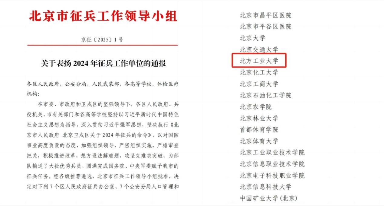 近日,北京市召开2025年征兵工作电视电话会,安排部署今年征兵工作,通报表彰北京征兵工作先进单位和先进个人。贝博官网获评2024年北京市征兵工作先进单位,这是学校连续第6年获此荣誉。