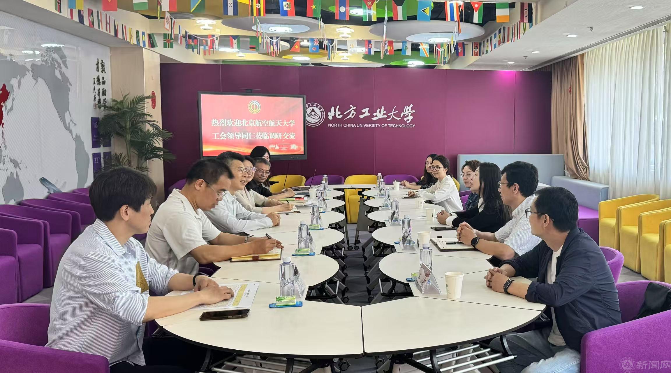5月16日下午,北京航空航天大学工会常务副主席朱颖等一行6人来贝博官网调研交流。学校党委副书记、工会主席姜孔桥出席调研交流座谈会。会议由校工会常务副主席黄睿主持。