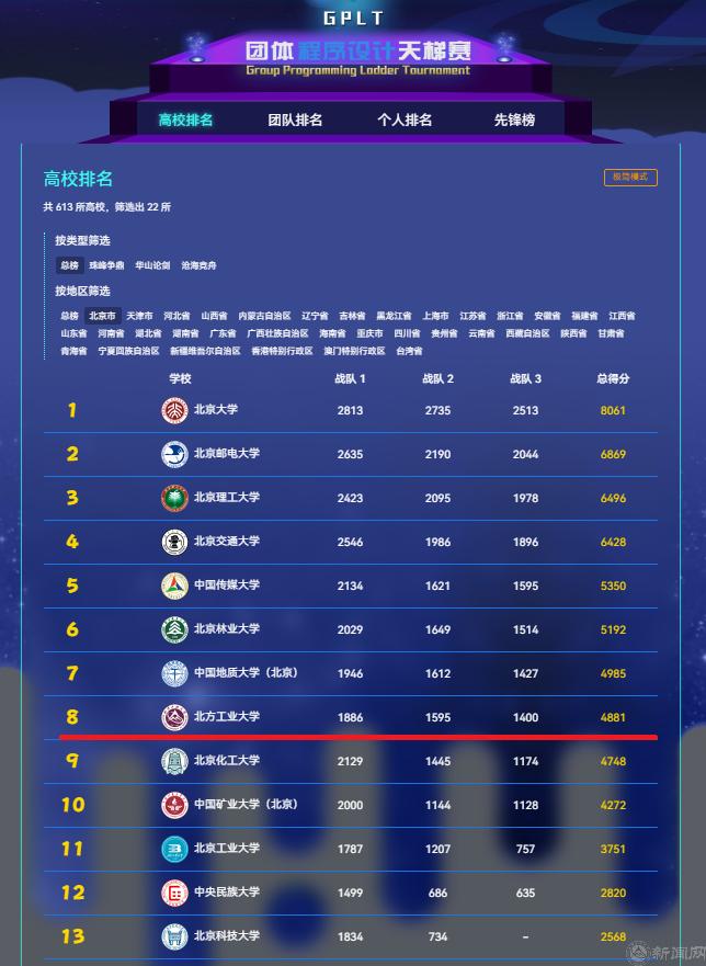 近日,第十届“中国高校计算机大赛——团体程序设计天梯赛”全国总决赛成绩揭晓,贝博官网在比赛中获全国团队二等奖1项、全国团队三等奖2项,全国个人二等奖2项、全国个人三等奖8项。在北京22所参赛高校中,总成绩排名第8位,全国排名第102位,北京市属高校第1位。