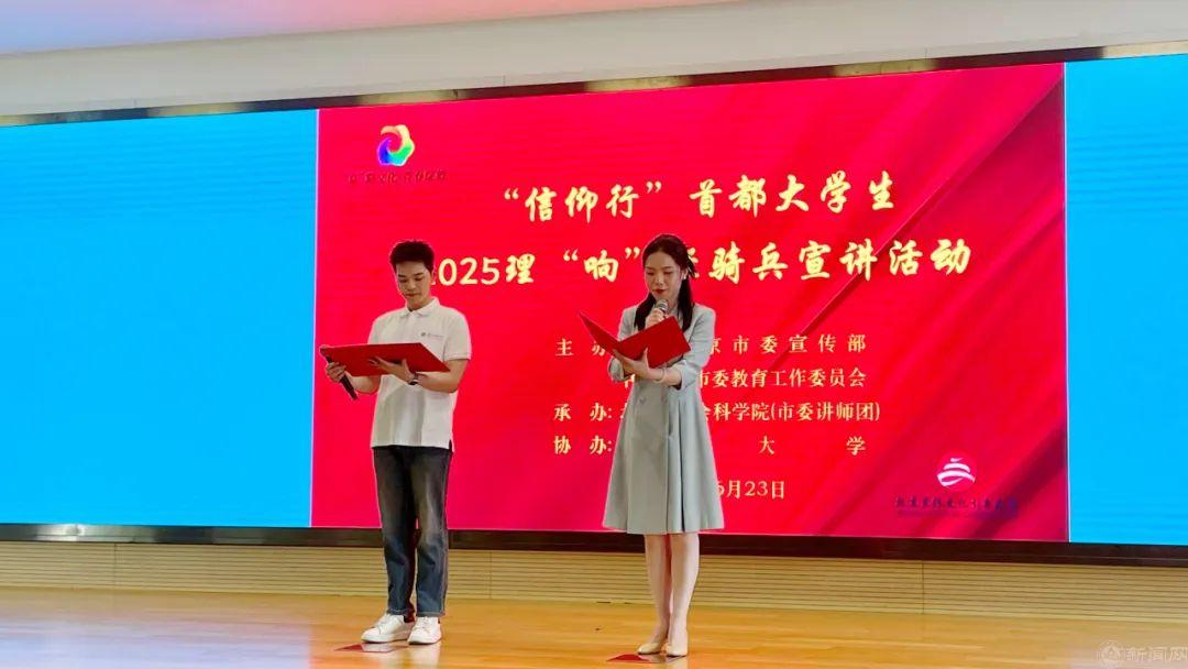 “‘京’彩文化 青春绽放”“信仰行”首都大学生理“响”轻骑兵系列宣讲活动由中共北京市委宣传部、北京市委教育工委主办,旨在为首都高校青年学子学理论、用理论、展示自我、成长成才搭建平台,引领大学生对党的创新理论创新阐释、创新表达、创新传播。此次活动得到新华网、《经济日报》等多家媒体关注。