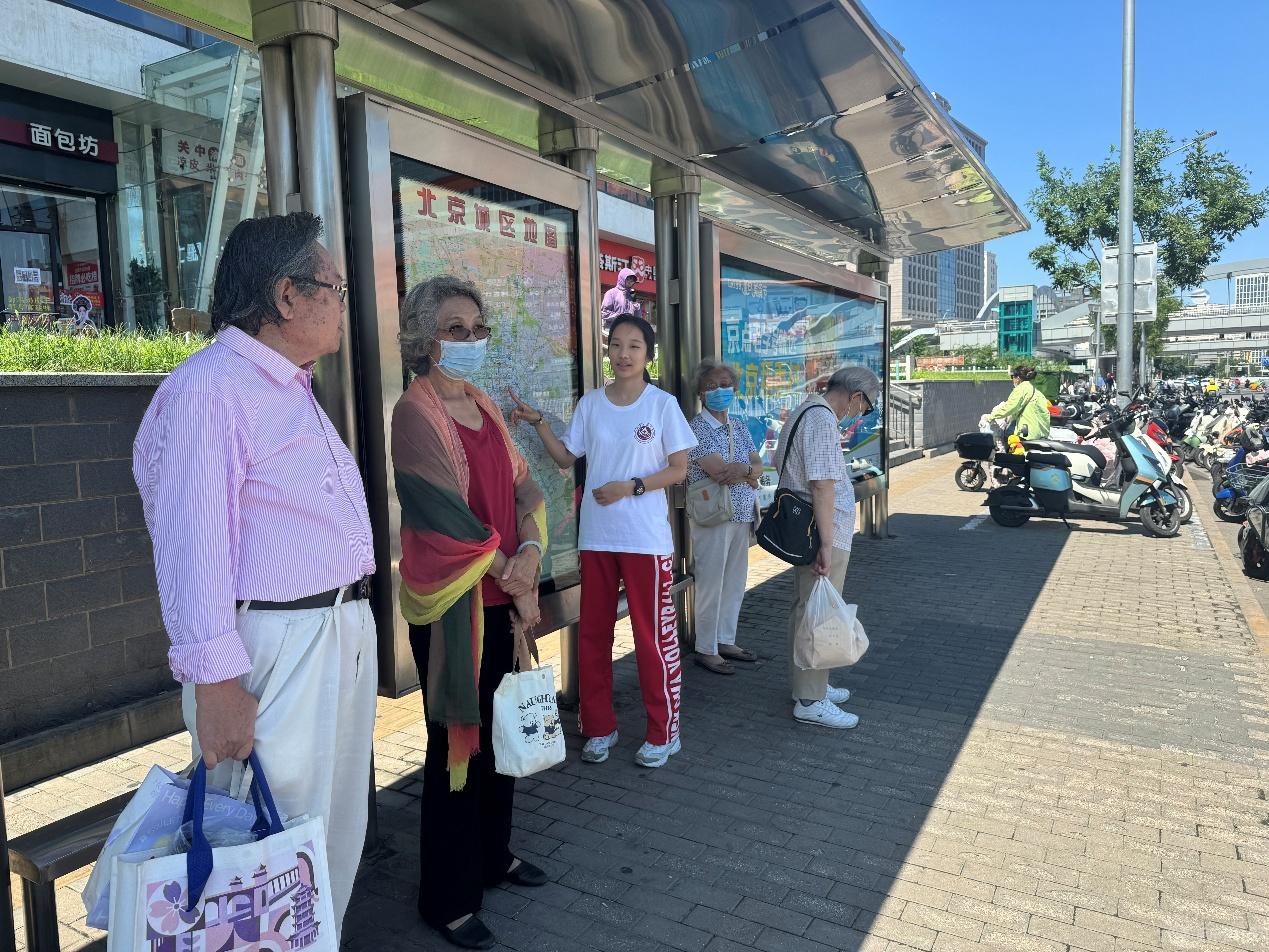 在圆明园东路公交站,实践团开展了红色故事快闪宣讲,把红色故事讲给候车乘客:圆明园残垣,铭记八国联军罄竹难书的暴行;中关村大街,回响邓稼先“科技报国”的铿锵誓言。听众虽只数十,但每一次颔首、每一句“谢谢”都是对实践团成员最好的肯定。宣讲结束,成员们俯身擦拭站牌,留下洁净与敬意。短暂停留,却让他们深知:历史的接力棒已传到青年手中,赓续红色血脉,使命在肩。