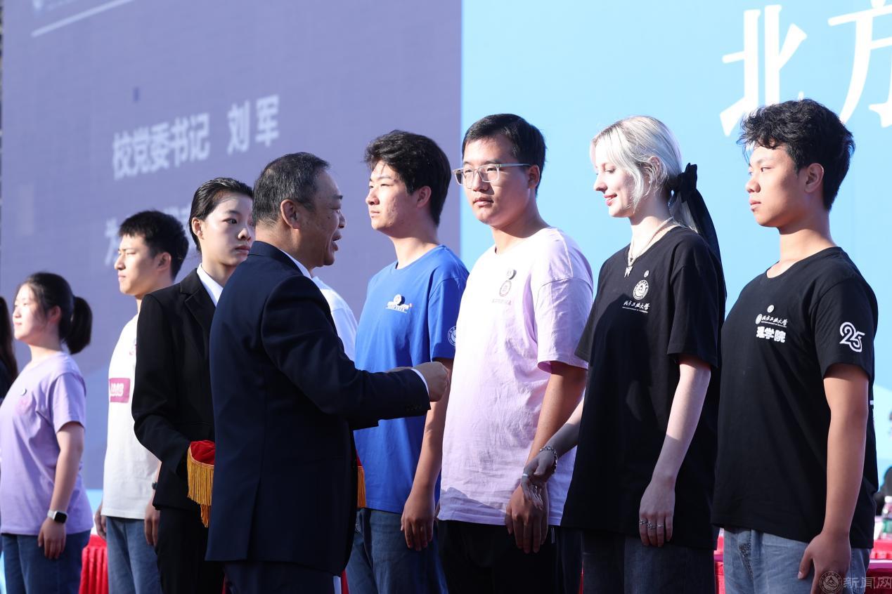 党委书记刘军为新生代表佩戴ballBET贝博BB艾弗森校徽,欢迎2025级新同学加入北方工大,开启人生新征程。