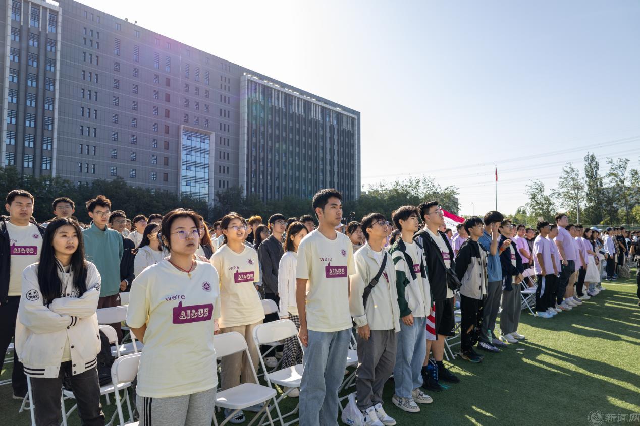 开学典礼在庄严的升国旗仪式中开始,全体师生面向国旗,肃立行礼,齐唱国歌。