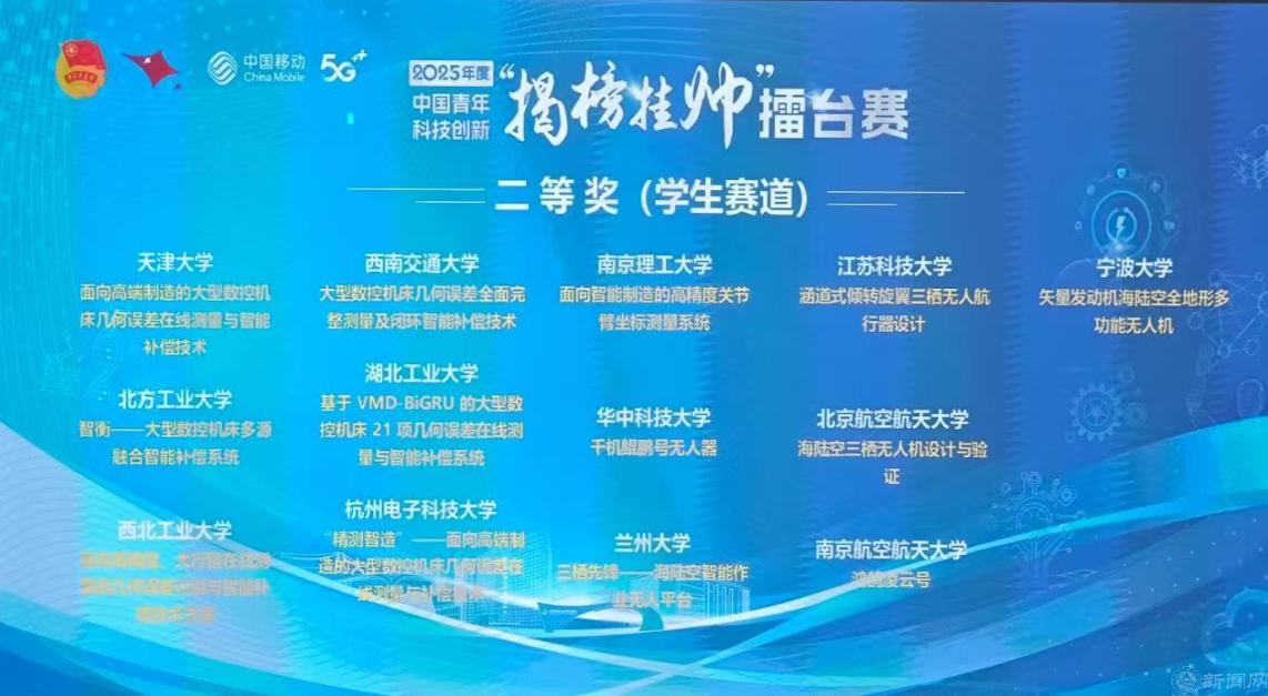 近日,由共青团中央、中国科协、教育部、中国社会科学院、全国学联联合主办的2025年度中国青年科技创新“揭榜挂帅”擂台赛高端装备领域主擂台赛在湖南长沙市举行。贝博官网学生创新团队凭借自主研发的“智衡——大型数控机床多源融合智能补偿系统”项目从来自全国121所高校的302支顶尖团队、近千名科创青年中突围,荣获学生赛道全国二等奖。