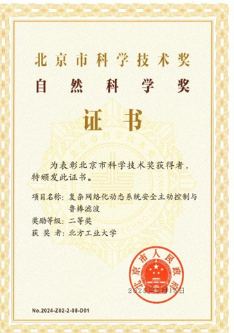 由贝博官网作为第一完成单位,庞中华教授为第一完成人的项目“复杂网络化动态系统安全主动控制与鲁棒滤波”,获得“自然科学奖”二等奖。姚海波教授参与完成的项目“小净距超大跨隧道建造关键技术及应用”,获得“科学技术进步奖”二等奖。胡长斌教授参与完成的项目“保障超大城市用电安全的需求侧资源灵活调节关键技术及工程应用”,获得“科学技术进步奖”二等奖。