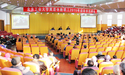 2015年1月8日上午,学校在第三教学楼报告厅举行离退休教职工2015年迎新春团拜会。学校领导,离退休工作领导小组成员、各学院党委书记、相关部门负责人、离退休老同志三百余人参加会议。团拜会由离退休工作处处长兼离退休党委书记黄睿主持。