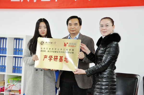王建稳副校长致辞,他介绍了学校的发展历程,对土木工程学院产学研基地的建设工作给予肯定。孙世国院长、高建岭书记介绍了学院在人才培养、教学科研方面的优势和取得的成果,天津华厦大地建筑工程研究院有限公司王斌斌院长介绍了企业的发展历程以及在工程建设方面取得的成果,建筑网、浙江兴业建设项目管理有限公司全权代表王丹代表总经理阮木对基地建设表示祝贺,并对建筑网的架构及发展向会议做了详细介绍。天津市来宾、绍兴市其他来宾以及北京代表等也发表了意见。宾主进行了深入交流和沟通,达成多项共识,表示今后将加强产学研方面的合作开发和建设。活动进行了揭牌和签约仪式,王建稳副校长亲自为两家企业进行了授牌。