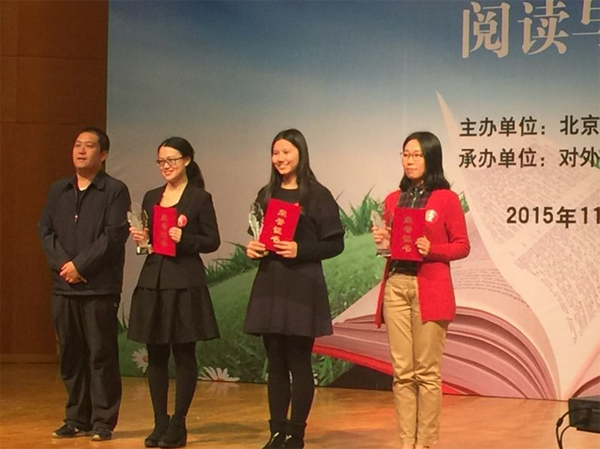 在下午的决赛中,陈依琪在出场顺序及其不利的条件下,顶住了压力,发挥出色,应答机敏,得到专家评委们的一致认可,在强手如林的角逐中,最终以总分第二名的成绩,获得一等奖。这是贝博官网在北京市英语演讲比赛中的最好成绩。