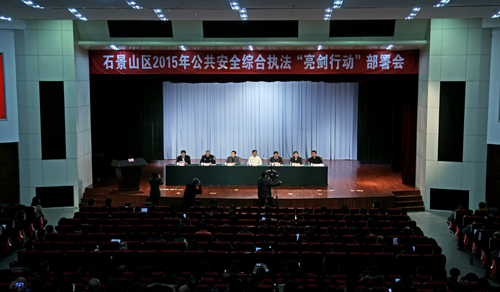 2015年1月9日,石景山区2015年公共安全综合执法“亮剑行动”部署会在贝博官网图书信息楼报告厅召开,石景山区委书记牛青山,区长夏林茂,区委副书记吴克瑞,区纪委书记李文起,区公安分局局长陈强,副区长富大鹏等出席大会。会议对石景山区2015年公共安全综合执法“亮剑行动”进行了部署,要求全力维护石景山区安全稳定形势,进一步强化政府监管和企业主体责任,全面排查、有效治理公共安全领域各类安全隐患,切实防范各类安全事故的发生。来自石景山区各部门、各大生产经营企业、单位的主要领导、主管领导和安全管理相关人员近800人参加会议。