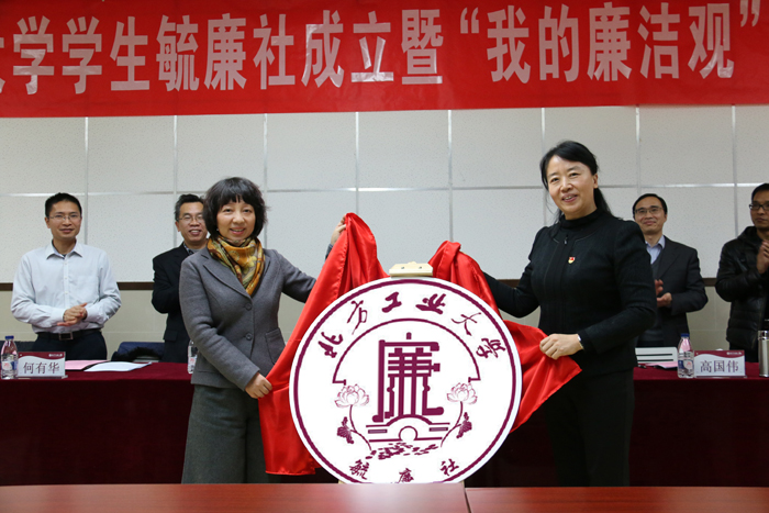 随后举行了贝博官网首个大学生廉洁教育社团“毓廉社”的成立仪式。校纪委书记欧阳媛、校党委副书记田红芳为毓廉社的标志揭幕,校纪委副书记刘夕海、学生工作部部长高国伟为社团指导老师、社团负责人颁发了聘书,校团委社团工作部部长谌奕鹏宣读了关于同意毓廉社的批示,学生社团联合会主席冯新宇宣读了毓廉社章程,毓廉社第一任社长林一诺宣读了社团2017年工作计划。