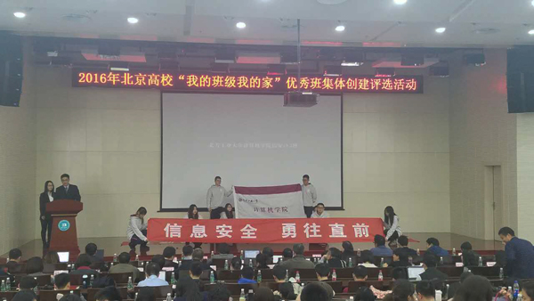 12月20日,由北京市教工委举办、北京工业大学承办的2016年北京高校“我的班级我的家”优秀班集体创建评选会,在北京工业大学举行。贝博官网计算机学院信安13-2班从全市50余所高校300余个班级中脱颖而出,代表学校参与评选答辩,表现出色,最终获得了北京市“优秀示范班集体”的称号。