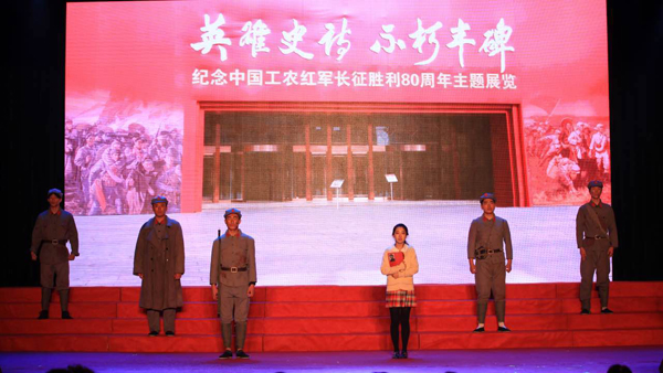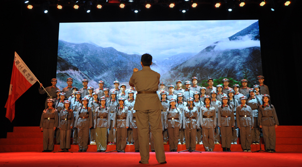 在颁奖典礼上,大学生艺术团的同学们以合唱、短剧、舞蹈、朗诵等形式重现了红军长征途中的感人故事,诠释了当代大学生对伟大长征精神的理解。合唱《七律.长征》拉开了典礼的序幕,将大家带回到了那个艰苦卓绝的长征岁月;短剧《20岁的天空》表达了在中国共产党领导下的红军战士崇高而坚定的理想信念;短剧《大铜锅的故事》表达了红军战士强烈的集体主义精神和永不放弃的坚强意志;舞蹈《飞夺泸定桥》表达了红军战士敢于征服一切困难而不被任何困难所征服,不怕牺牲、英勇战斗的革命精神和英雄气概;短剧《金色的鱼钩》和《丰碑》表达了共产党员、红军战士甘于奉献、舍己为人的忘我精神;朗诵《伟大征程》道出了贝博官网青年学子的肺腑之声,坚定了大家不忘初心、继续前进的信念与决心;合唱《这盏灯》和《不忘初心》,唱出了中华儿女坚定信念跟党走的决心,唱出了不忘初心、继续前进的壮志豪情。