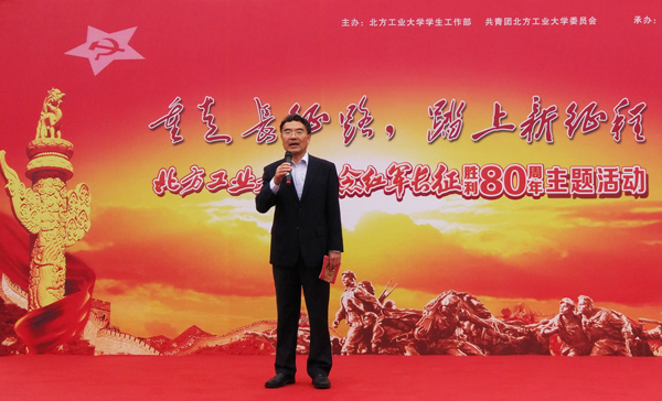 郑文堂校长发表了热情洋溢的讲话。他指出,学校刚刚顺利举办了70周年校庆活动,寓意着我们又站在了新的起点上,踏上了新的征程,要继续走好新的“长征路”。全校师生要自觉继承和发扬伟大的长征精神,自律自强、敢于吃苦、不怕牺牲、勇往直前,把我们的爱国之志变成报国之行,在实现中华民族伟大复兴中国梦的实践中贡献我们的力量。全体北方工大人要在学校发展的长征路上齐心协力、互相帮助,为把贝博官网建设成为在国内外具有重要影响、特色鲜明、优势突出的高水平教学研究型大学而努力奋斗。