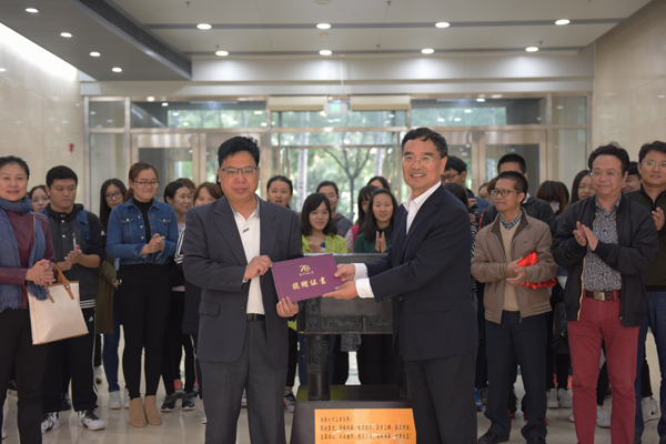 10月13日下午,陕西校友向学校捐赠司母戊方鼎揭幕仪式在博远楼一层大厅举行。校长郑文堂出席司母戊方鼎揭幕仪式,仪式由宣传部部长何裕主持。