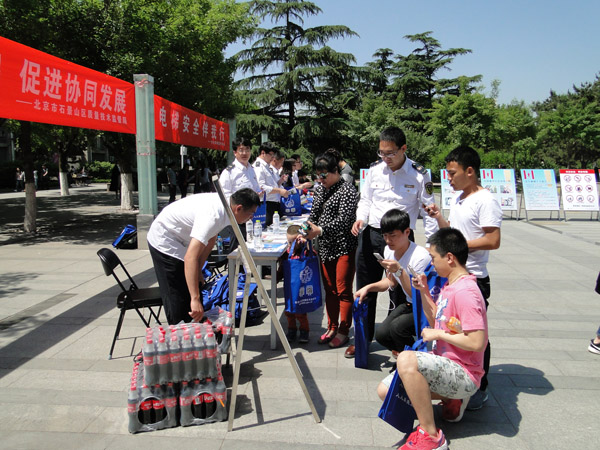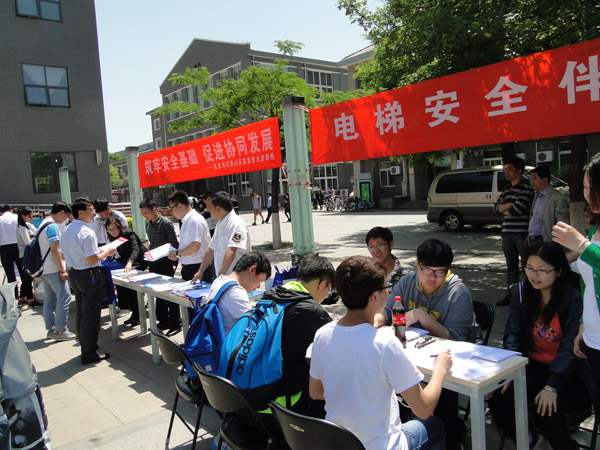 5月10日,后勤资产管理处协同校团委邀请北京市石景山区质量技术监督局特种设备检测所,在学校毓秀广场开展了一次主题为“筑牢安全基础、促进协同发展——电梯安全伴我行”的宣传教育活动。活动旨在提高广大师生的安全乘梯意识,强化安全乘梯基本常识,最大限度减少乘梯中的安全事故,为师生员工的工作学习保驾护航。周开国副局长、郑博科长、管军民所长等一行12人,为师生提供了专业宣传服务。