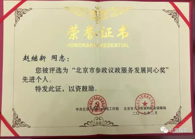 在日前召开的北京市统战部长会议上,贝博官网教师赵继新光荣获评首届“参政议政服务发展同心奖”先进个人。