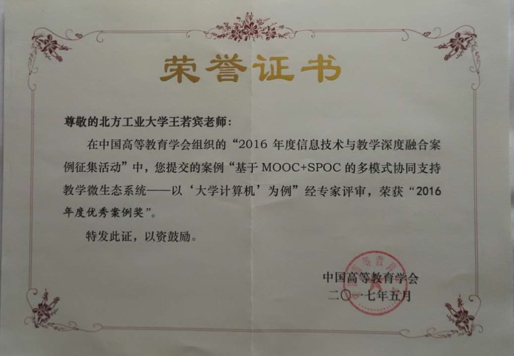 5月13日,由贝博官网计算机学院教师王若宾博士执笔,计算机科学与技术系计算机基础教研室教师共同完成的教学案例“基于MOOC+SPOC的多模式协同支持教学微生态系统——以‘大学计算机’为例”荣获中国高等教育学会“推进信息技术与教学深度融合”2016年度优秀案例奖。