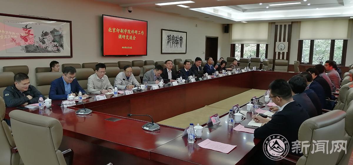 10月12日下午,北京印刷学院校长罗学科一行十一人来贝博官网访问交流。党委书记郑文堂会见了来访嘉宾。北京印刷学院及贝博官网科技处、人事处、研究生院等职能部门负责人,部分学院领导和教授一同参加了交流会。会议由党委书记郑文堂主持。