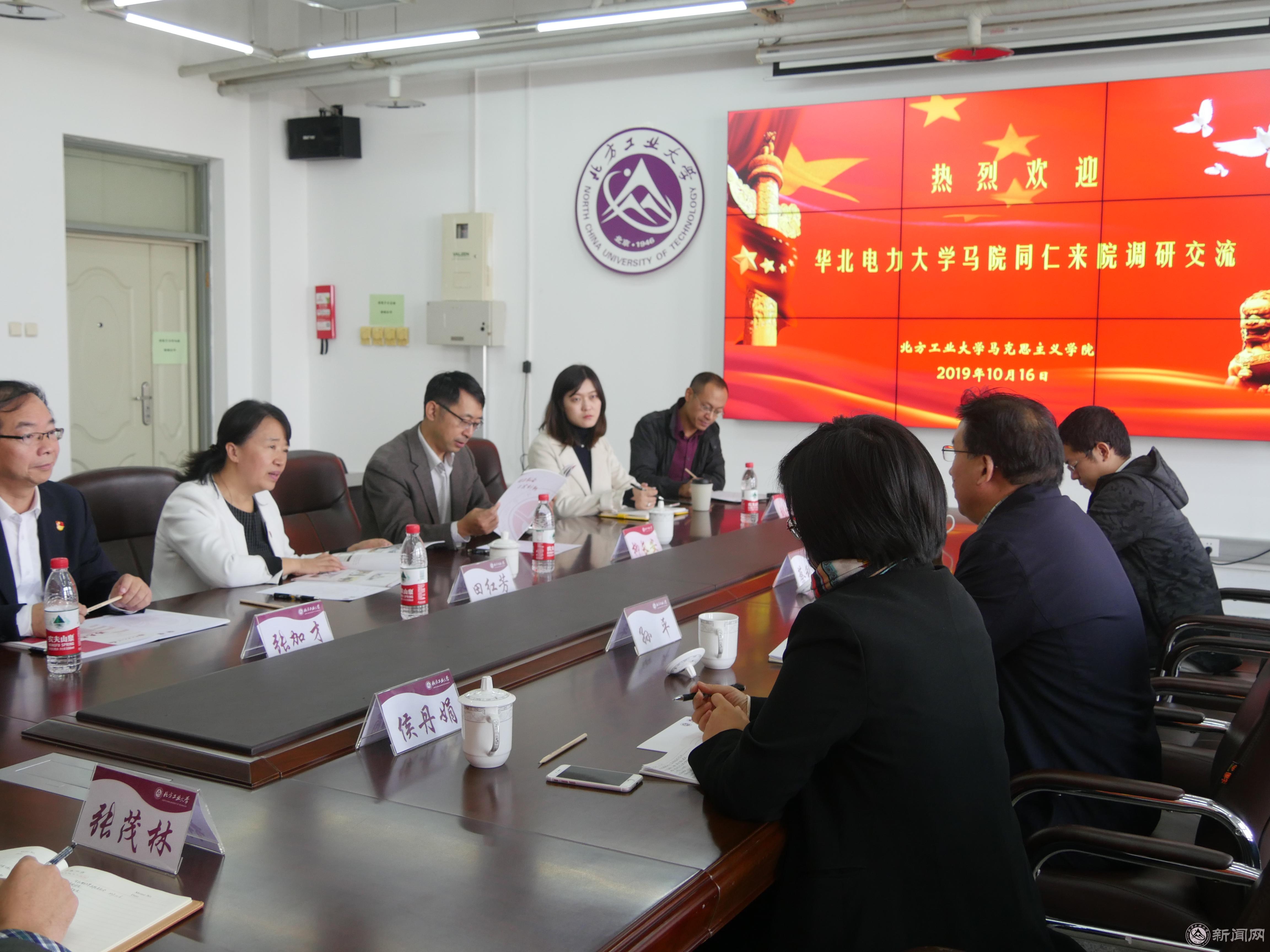 在全校上下深入推进“不忘初心、牢记使命”主题教育的背景下,为进一步推动马克思主义学院建设与思政课改革创新,扩大社会影响力,经前期充分沟通协调,10月16日上午,华北电力大学马克思主义学院党总支书记蔡利民、主持工作的副院长孙平等一行4人来贝博官网调研交流。校党委副书记田红芳、副校长柳长安参加了活动,并结合主题教育相关要求在马院开展了专题调研。
