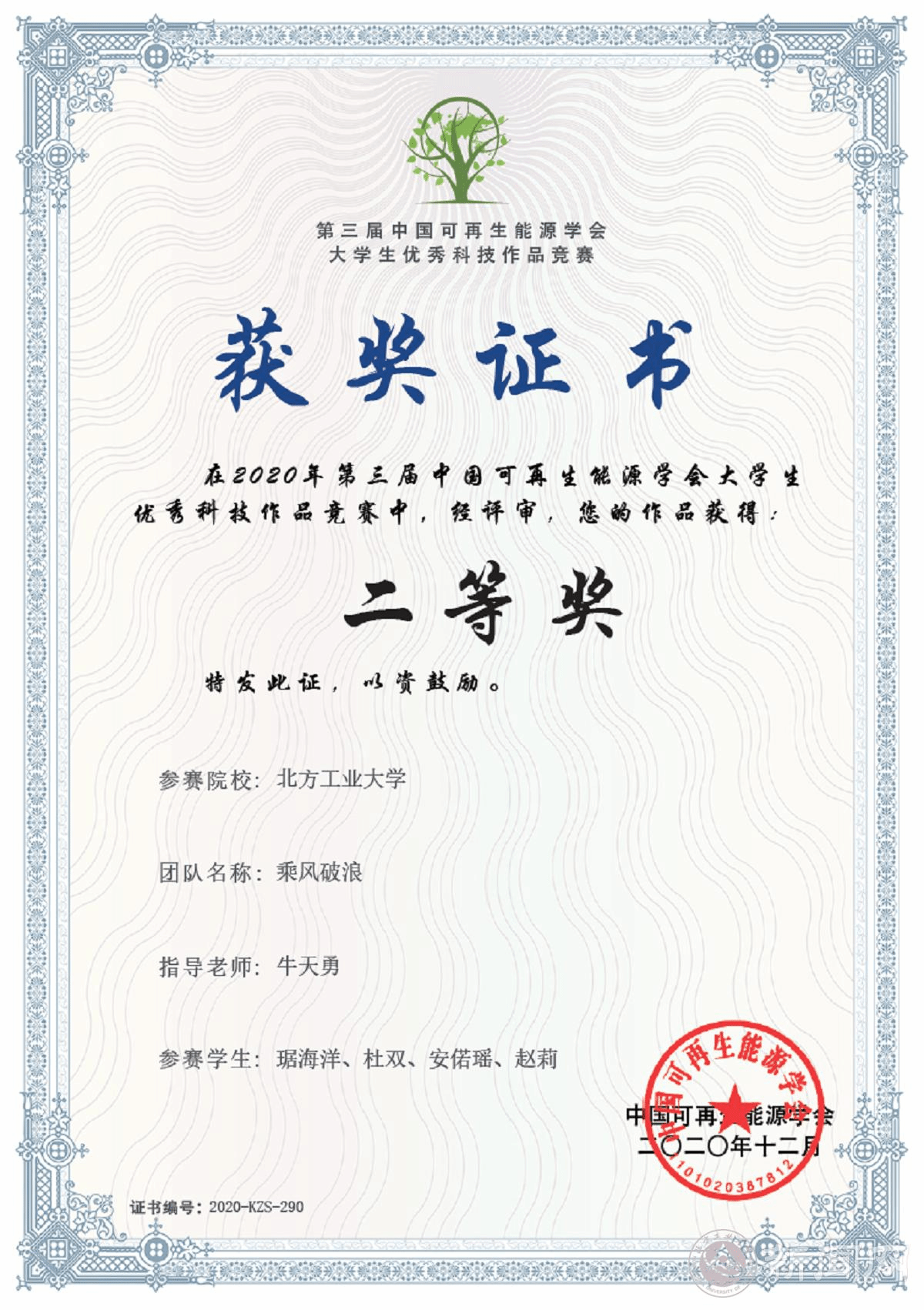近日,由中国可再生能源学会主办的第三届中国可再生能源学会大学生优秀作品竞赛决赛成功举办。来自华北电力大学、哈尔滨工业大学、中国农业大学、天津大学等120多所高校参与此次竞赛。贝博官网在比赛中获得研究生组第二名的成绩,荣获二等奖。