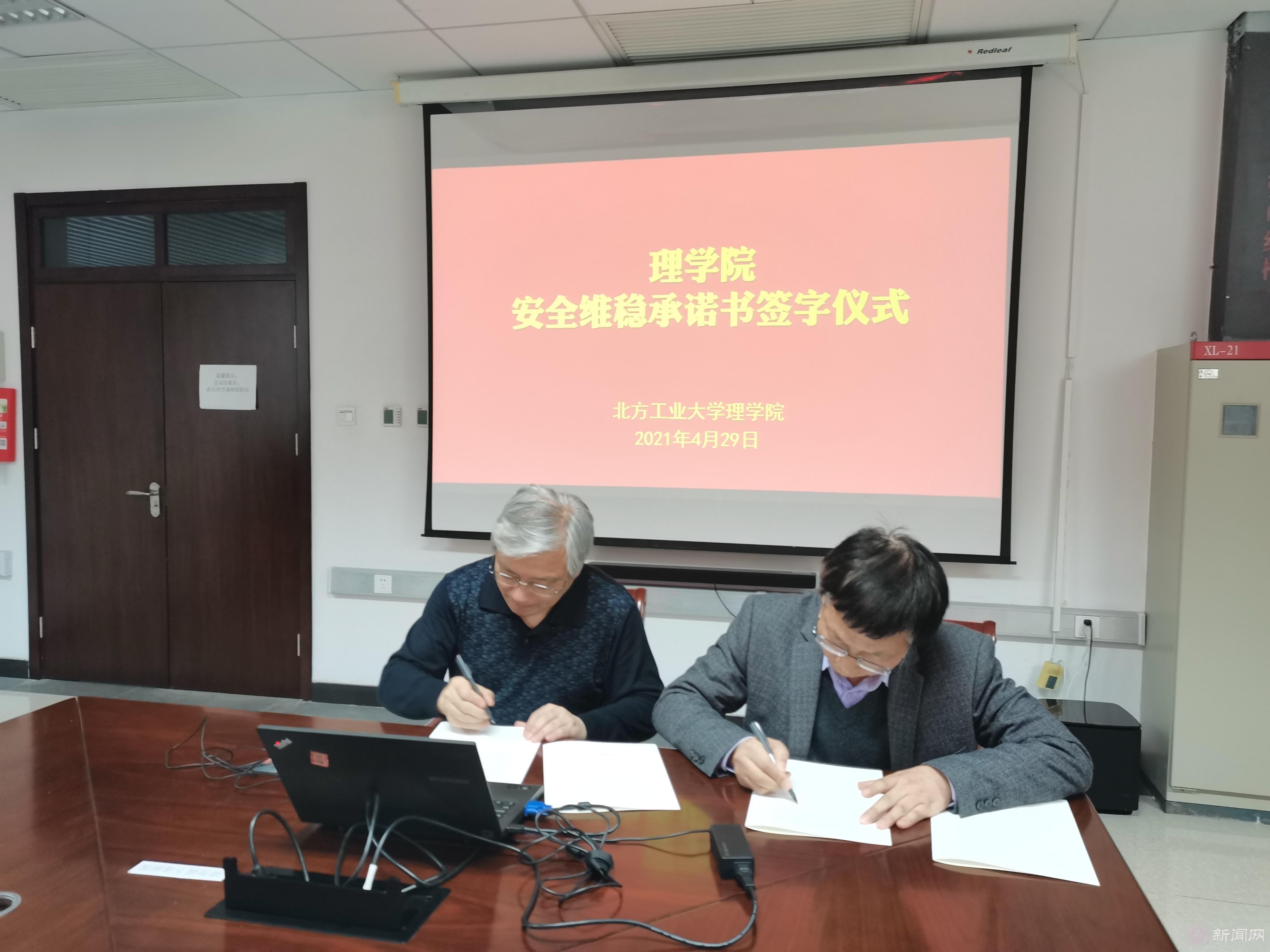 最后,理学院隆重进行了安全维稳承诺书签字仪式。学院院长、书记代表学院分别与班子副职、各系主任、责任教授、教工支部书记签订了《2021年消防安全责任书》和《2021年理学院维护安全稳定工作责任分解任务书》。