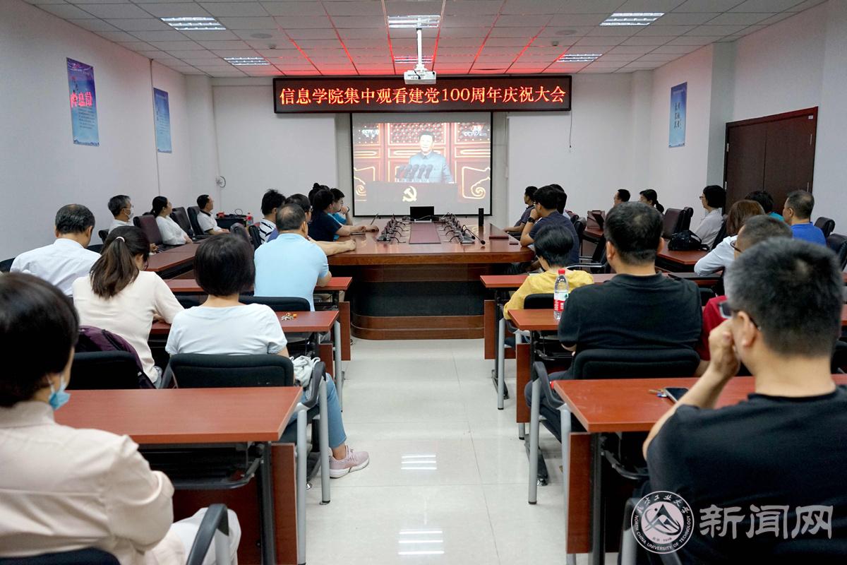 7月1日上午8时,庆祝中国共产党成立100周年大会在天安门广场隆重举行。场内参会师生代表有幸亲眼目睹伟大的中国共产党迎来百年荣耀时刻,激动不已,热泪盈眶,心中充满自豪与喜悦。场外信息学院在校全体师生积极集会,认真观看建党100周年庆祝大会,党史学习教育再掀新高潮。学院全体中层干部、党委中心组成员在广学楼报告厅主会场,全院教师在瀚学楼1014会议室、博远楼1023会议室,300余名学生代表在学生服务楼多功能厅、励学楼424和527阶梯教室集中观看现场直播。