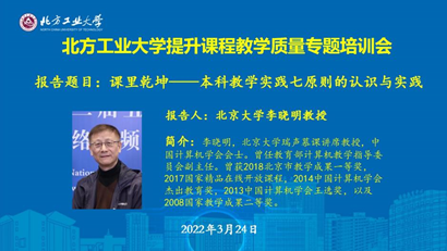2022年3年24日下午,应教务处、信息学院邀请,北京大学瑞声慕课讲席教授、中国计算机学会会士李晓明教授为贝博官网教师做了题为“课里乾坤——本科教学实践七原则的认识与实践”的专题报告。报告会以视频方式进行,教务处处长刘文楷主持。