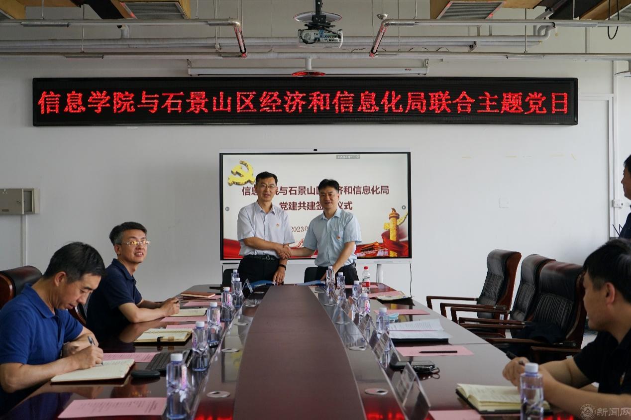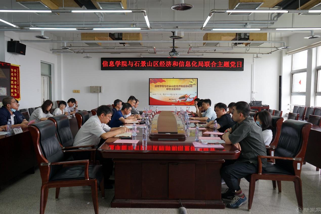 6月1日,石景山区经济和信息化局与贝博官网信息学院开展联合主题党日活动。经信局党组副书记、局长张晓磊,副局长杨光、肖珂,信息学院党委书记王月海,院长马礼,党委副书记陈卫,副院长段建勇、鲁远耀,信息学院党委理论学习中心组成员、教师代表等双方20多名党员干部参加活动。同时,本次活动也是信息学院党委理论学习中心组(扩大)的一次集体学习,校党委宣传部副部长、校党委理论学习中心组巡听工作组成员陈国秀应邀到会指导。王月海主持此次主题党日活动。