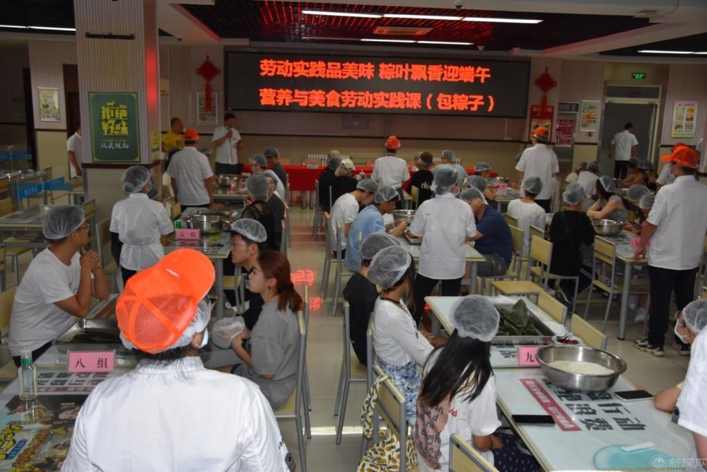 6月8日,“粽叶飘香迎端午—包粽子劳动实践活动”在毓秀餐厅二层举行。60多名同学在饮食服务中心10多位师傅的指导下,亲自动手,现学现做,包出了数百枚芳香四溢的粽子并亲口品尝了自己的“劳动成果”。此次活动拉开了“营养与美食劳动实践课”的序幕。该课程的开设是学校后勤党委大力推进劳动教育一项具体举措。